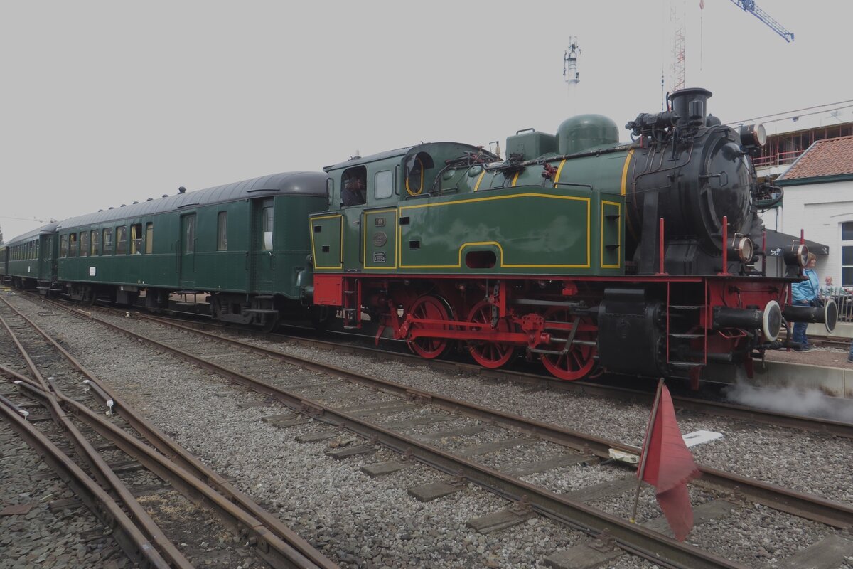 Ex-Hoogovens Lok 22 TOM steht mit Dampf am 6 Mai 2023 mit ein Dampfpendelzug in Maldegem während das Dampfwochenende der SCMs.