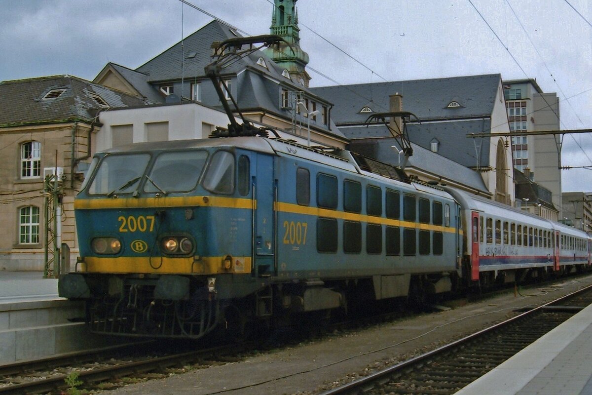 . Traurige Erinnerungen - Gestern war der letzte Tag für die beiden einstigen Prestige Züge EC Vauban und EC Iris. Was bleibt sind die Erinnerungen an bessere Zeiten. Am 05.04.2008 erreicht die SNCB HLE 2004 mit dem EC 97 "Iris" Bruxelles Midi - Zürich HB am Haken den Bahnhof von Luxembourg. (Jeanny)