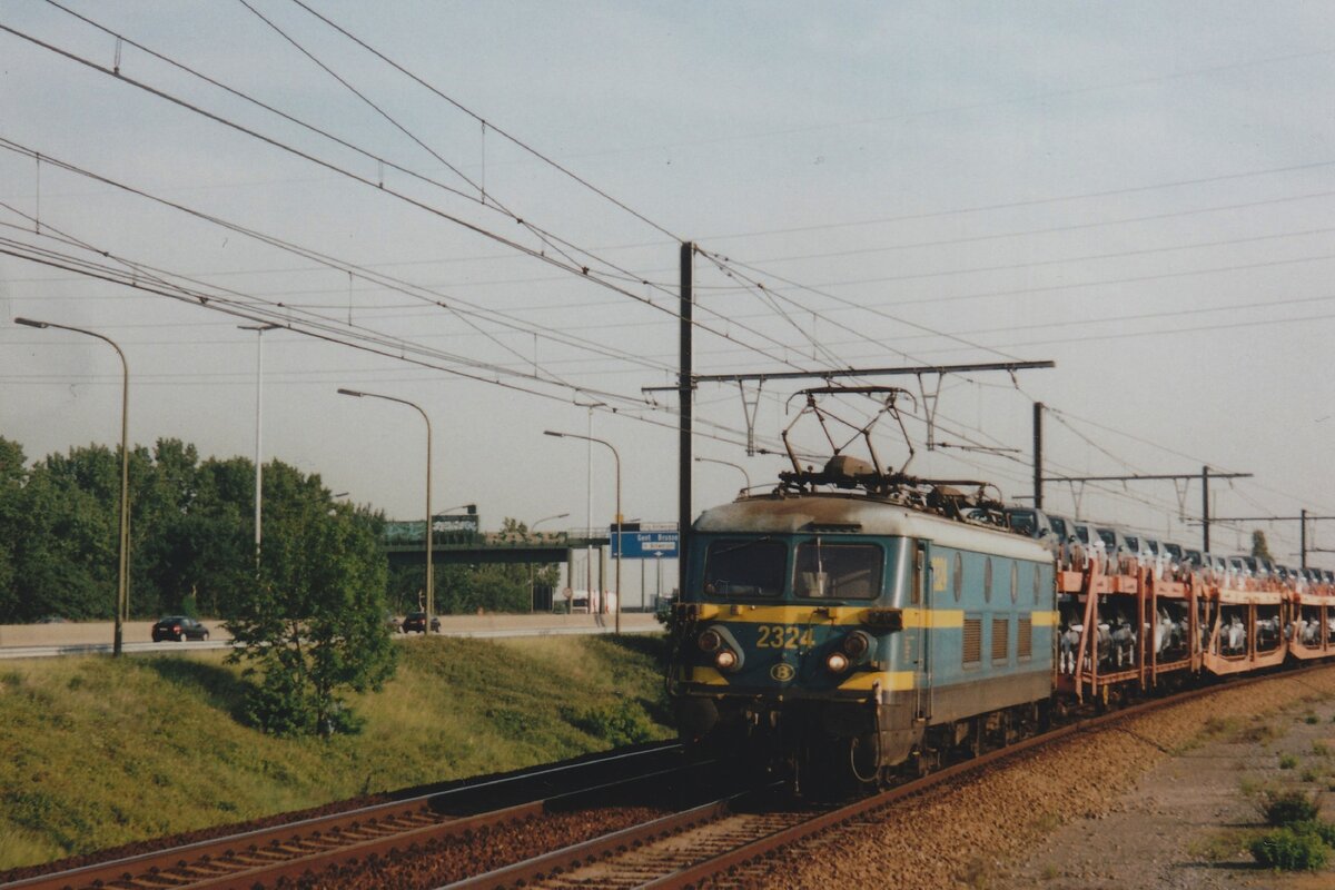 NMBS 2334 durchfahrt mit ein PKW-Ganzzug Antwerpen-Luchtbal am 10 Juni 2006.