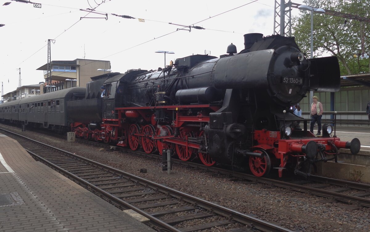 Die ex DR 52 5448-7 (seit 1992 im eigentum der EMBB - Eisenbahnmuseum Bayrischer Bahnhof e.V.) ausgestellt im Leipziger Hauptbahnhof auf dem Museumsgleis bzw. Traditionsgleis den Gleis 24, hier am 21.05.2016.
