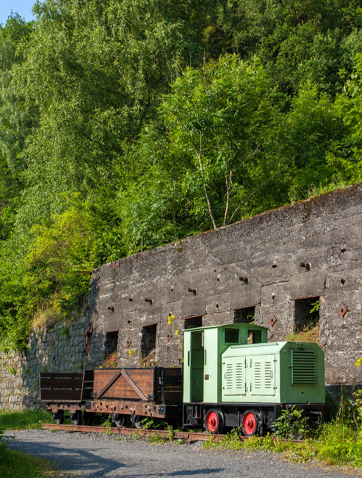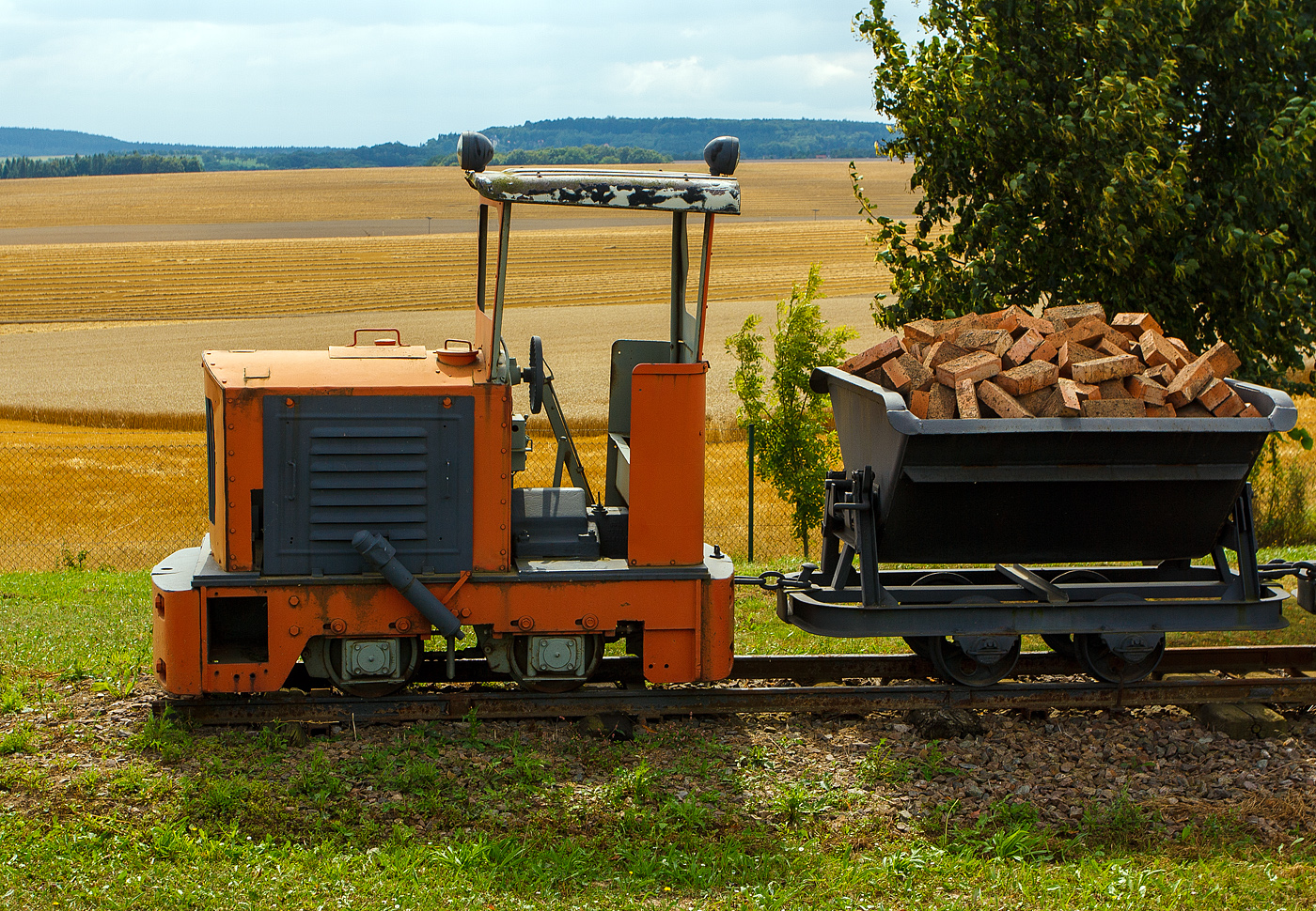 Die Schöma CFL 45 DC Feldbahnlokomotive Nr. 15 der FGF (Feld- und Grubenbahnmuseum Fortuna, Solms), abgestellt am 07.07.2013 bei der FGF in Solms-Oberbiel.