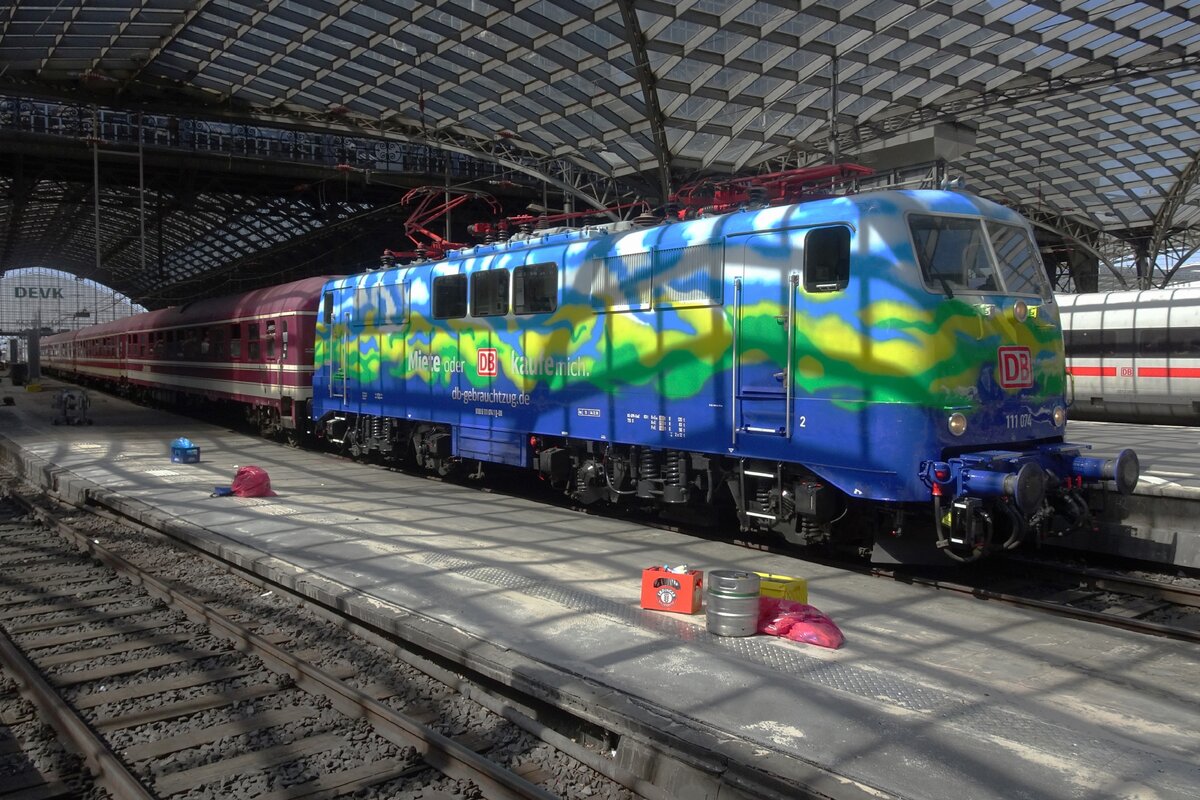 Am Sonntag 22 Mai 2022 steht 111 074 miot der Herzerather Sonderzug in Köln Hbf.