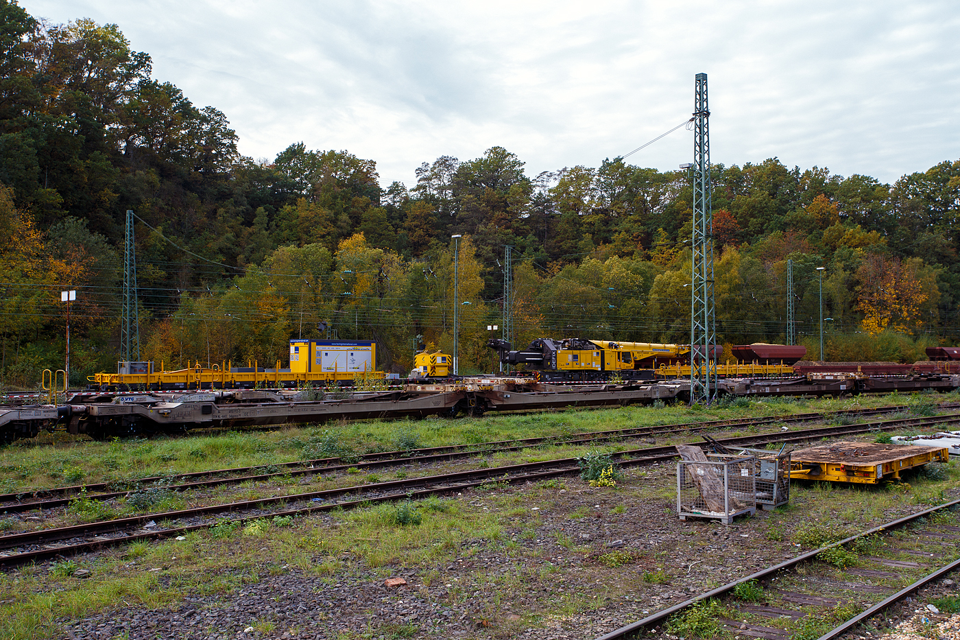 Der neue Eisenbahnkran 732 001 "Zeus" (Schweres Nebenfahrzeug Nr. D-DB 99 80 9 471 001-4) der DB Netz AG, Maschinenpool, Standort Fulda, wurde auf der Inno Trans 2014 in Berlin präsentiert (hier 26.09.2014). Dieser Kran ist keine Neuheit, aber imposant.