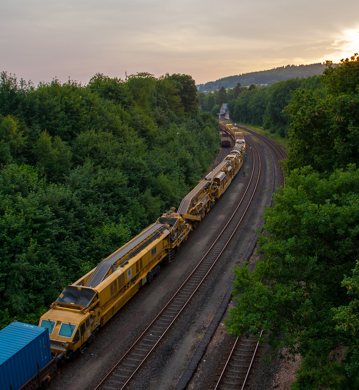 Die 277 031-1 (MaK G 1700 BB-2) der Schweerbau (bzw. eingestellt bei LDS) mit einem Zug von Materialförder- und Siloeinheiten MFS 100, der Schweerbau, hier abgestellt am 13.07.2013 in Betzdorf/Sieg.