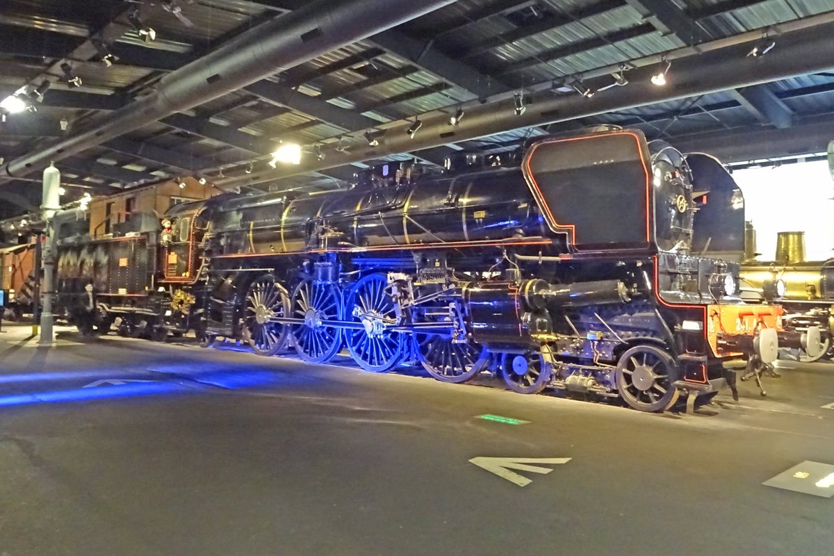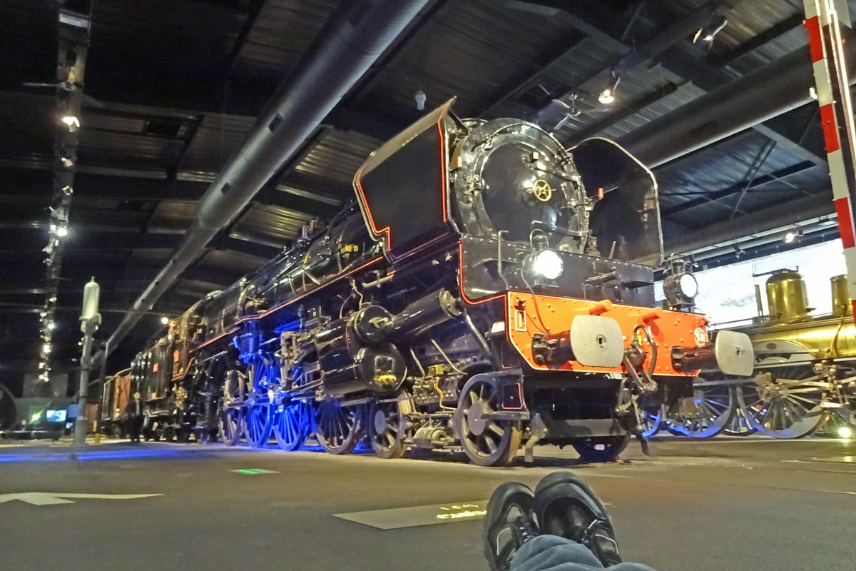 Die SNCF 241 A 65 in Rauch gehüllt.