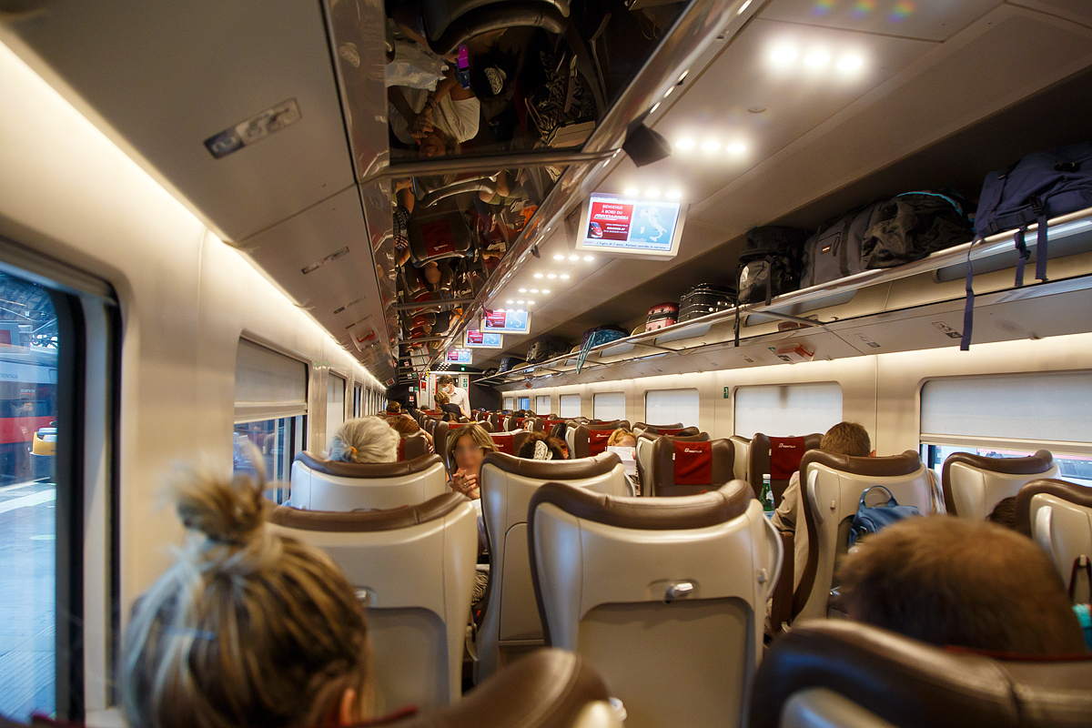 Steuerwagen in Grau und dazu ohne Graffiti, fährt in den Umsteigebahnhof Firenze Campo di Marte ein, nach einem kurzen Halt fährt er weiter in Richtung Firenze Santa Maria Novella. 18.05.2019 (Hans)
