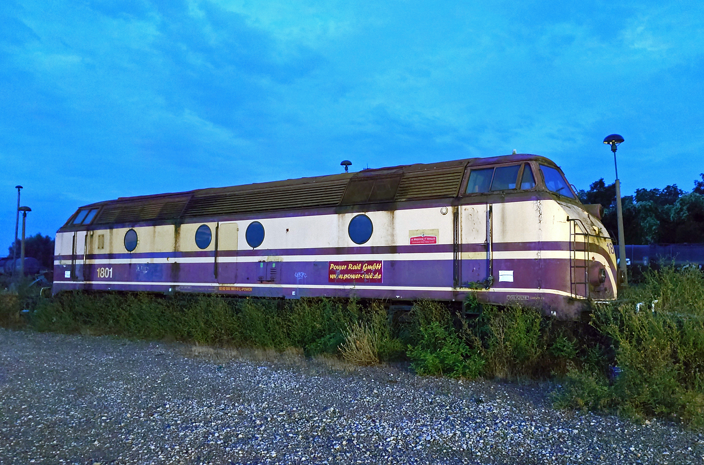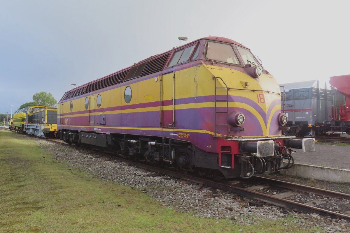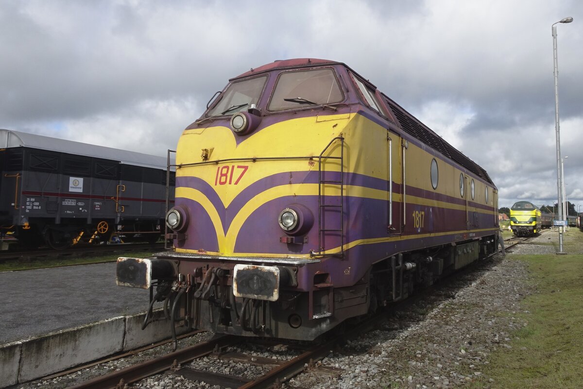 Die ehemaligen CFL 1817 der Magdeburger Firma Power Rail GmbH (NVR-Nr. 92 82 0001 817-0 L-POWER) am 06.05.2017 beim Rangieren auf dem Familienfest der Magdeburger Eisenbahnfreunde im Wissenschaftshafen Magdeburg. Sie macht mit ihrem Zug das Gleis für den (rechts stehenden) Esslinger VT 95 80 0301 035-1 D-CLR(angeschrieben 95 80 0303 027-6 D-CLR ist falsch) der Cargo Logistik Rail Service GmbH frei.