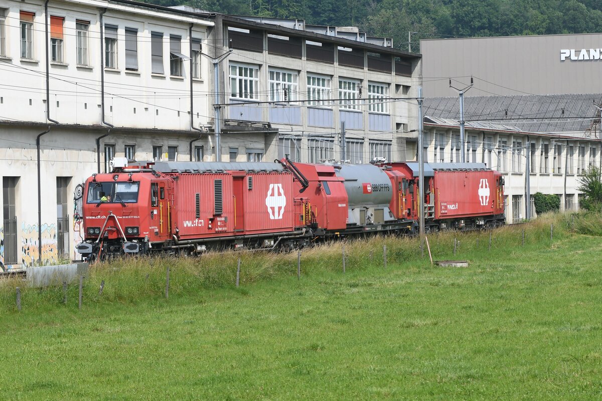 Türbeschriftung am Rettungsfahrzeug Schiene/Strasse der Feuerwehr Lavin (RhB) Xm 2/2 9928, hier ausgestellt im Depotgelände Landquart zum Jubiläum 125 Jahre RhB am 10.05.2014.