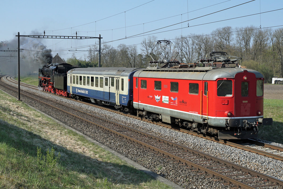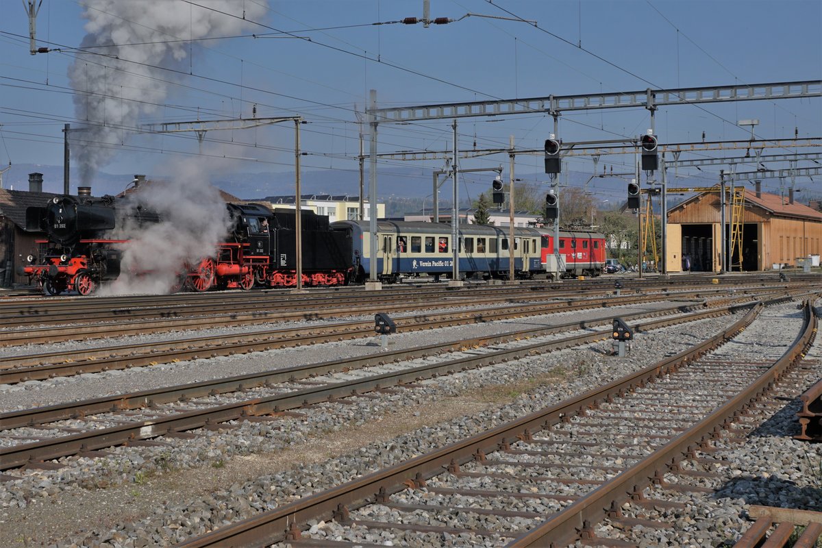 Die "Pacific" 01 202 mit den "Alpine Steam Express" bei St-Saphorin am 19. Jan. 2014.