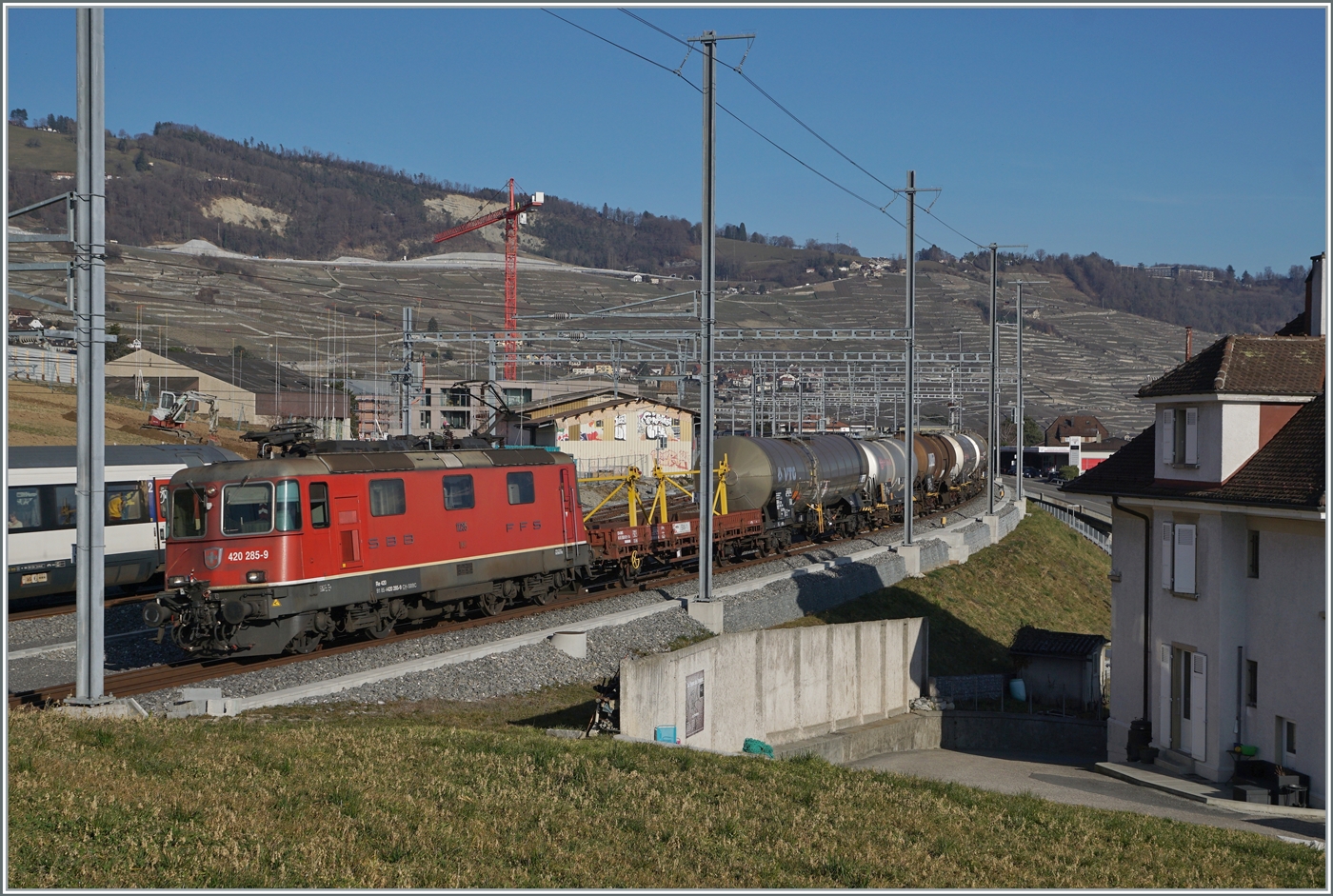 Ein SBB RABe 503 fährt als EC 37 Genève - Venezia SL durch den Bahnhof von Rivaz. Das Bild zeigt absichtlich etwas wenig Zug, dafür jedoch etwas mehr Bahnhof; obwohl modernisiert hat der Bahnhof von Rivaz doch noch einen gewissen Charme behalten, finde ich jedenfalls.