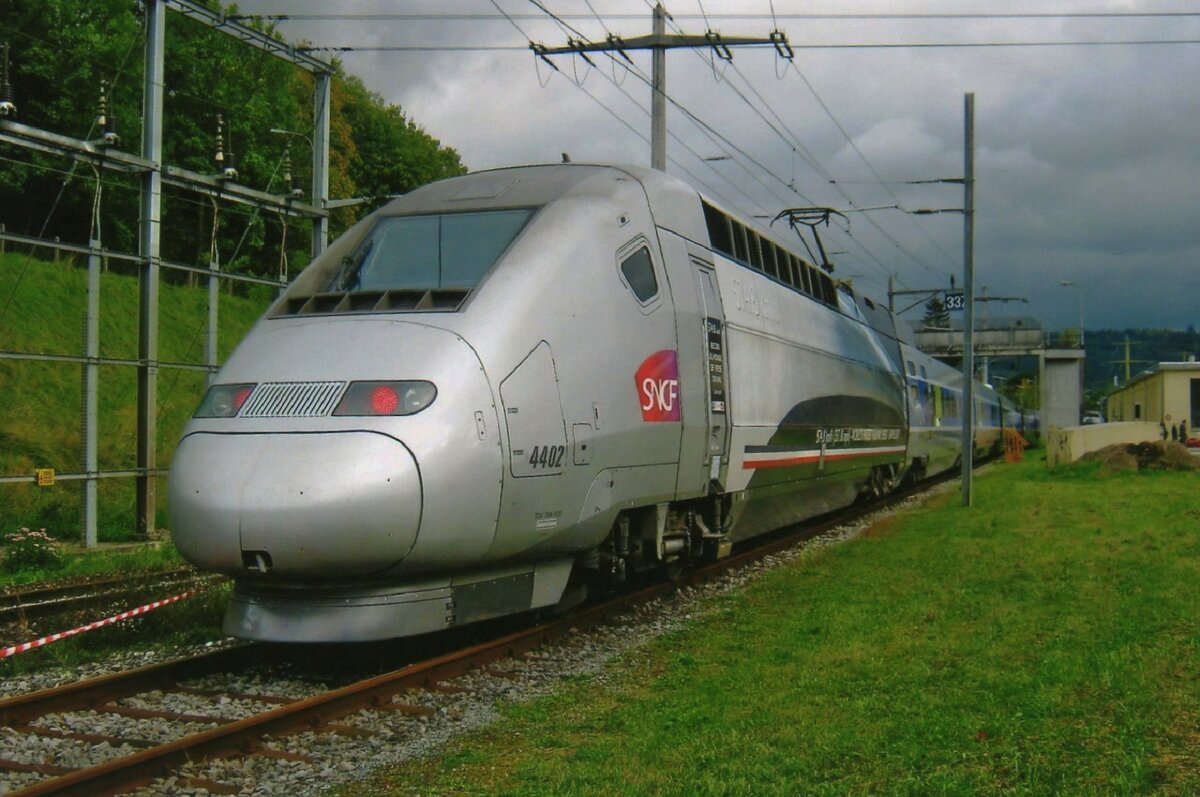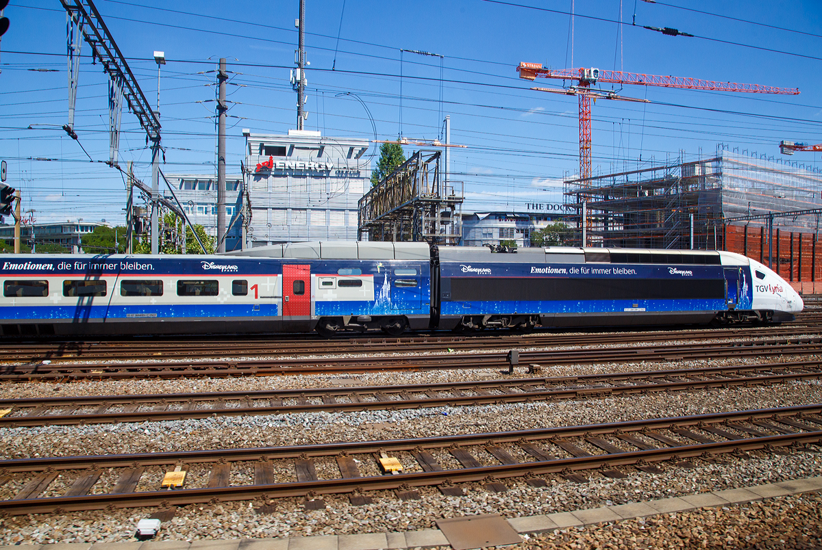 Der TGV Lyria 9203 von Paris Gare de Lyon nach Zürich kurz vor seinem nächsten Halt in Belfort-Montbéliard TGV.