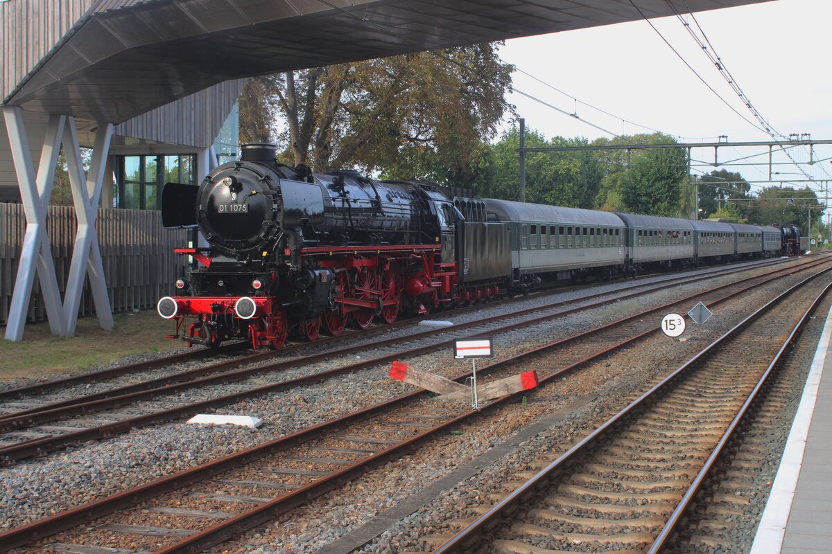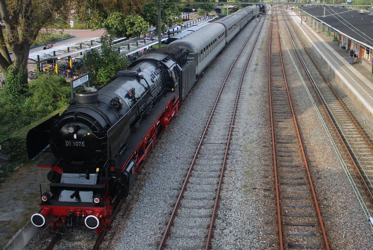 SSN 01 1075 steht am Schlüss den letzten Dampfpendelzuges von Terug naar Toen des Tages nach Beekbergen in Dieren am 6 September 2025. Leon Schrijvers