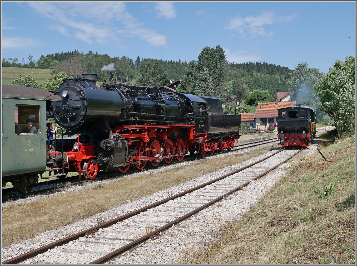 Bei der Coni'Fer (CFTVP) eine neue Heimat gefunden haben die mächtige (ex DR) 52 8163-9 (Baujahr 1943) und die kleine E 3/3 N° 5 (ex Alusuisse, Baujahr 1915) die in Hôpitaux Neufs Rücken an Rücken rangieren.