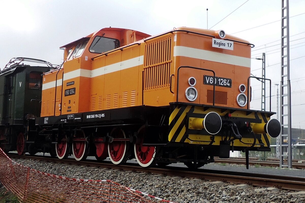 Die V 60 D - 106 756-0 (98 80 3346 756-0 D-PRESS) der PRESS - Eisenbahn-Bau- und Betriebsgesellschaft Pressnitztalbahn mbH, ex MTEG 346 756-0, ex ESTEG 19, am 30 April 2017 im Eisenbahnmuseum Bochum-Dahlhausen, beim Festwochenende "Ost trifft West".