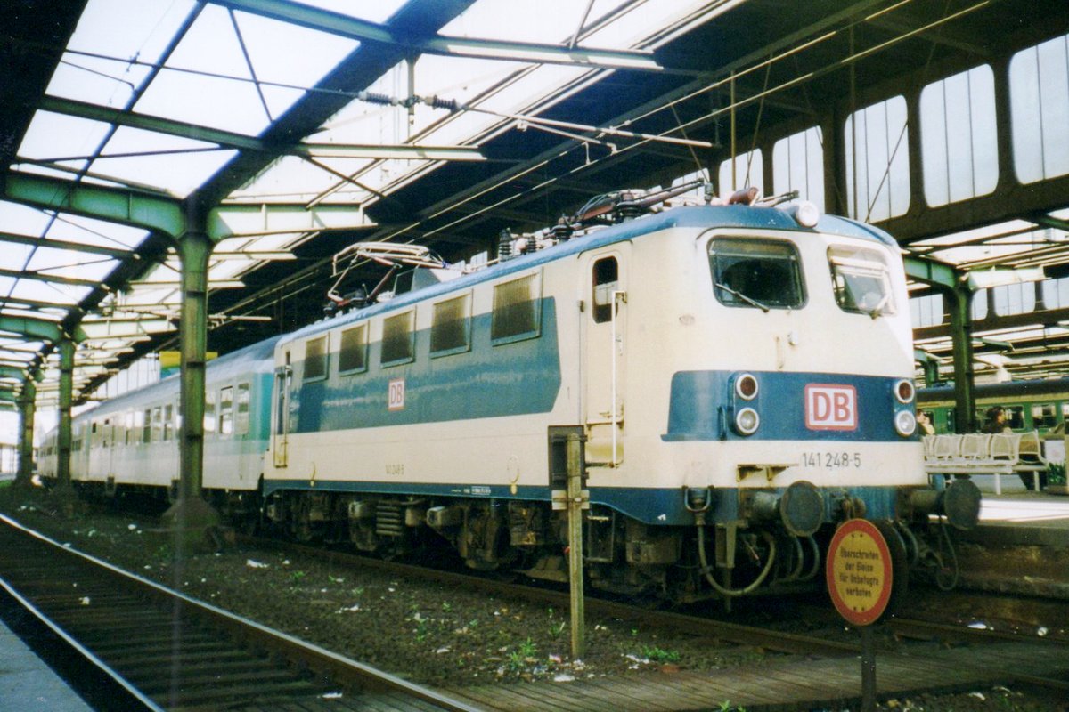 Die 141 248-5, ex DB E 41 248, ist am 15.02.2015 vor dem Lokschuppen in Siegen (hier ist das Südwestfälische Eisenbahnmuseum) abgestellt. So konnte ich die Aufnahme vom Parkdeck der City-Galerie machen.