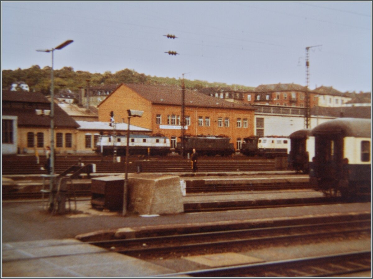 Ein Blick aus dem (damals noch) zu öffnenden Fensters eines IC bei der Einfahrt in Würzburg, festgehalten mit meiner 110-Film Knipse (und somit leider mangelnder Qualität) und mit dem Kommentar der Bildbeschriftung in meinem Fotoalbum: Letztes BW für die Lokomotiven der BR 118 und 144. 17. Sept. 1983
