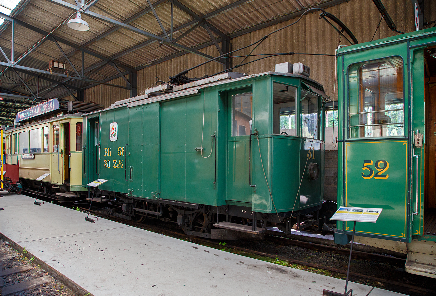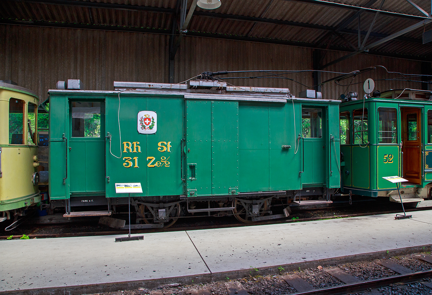 Der Triebwagen 642 vom Typ F 2.10 der Städtischen Straßenbahnen München (heute Münchner Verkehrsgesellschaft - MVG) (am 16.06.2018) ausgestellt im Verkehrszentrum des Deutschen Museums in München (Theresienhöhe).