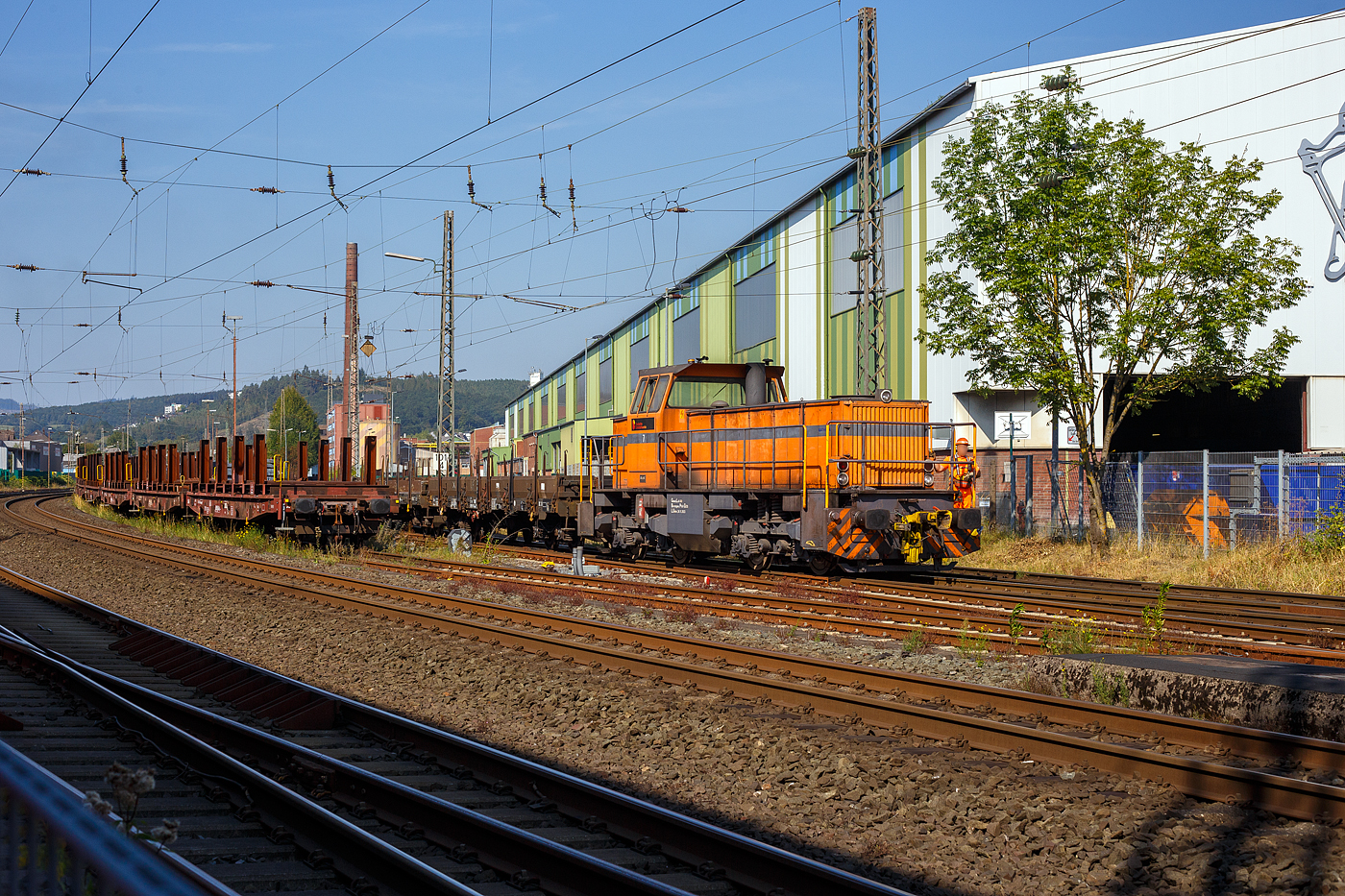 ein sehr schönes Bild der beiden 140er mit dem langen Güterzug.