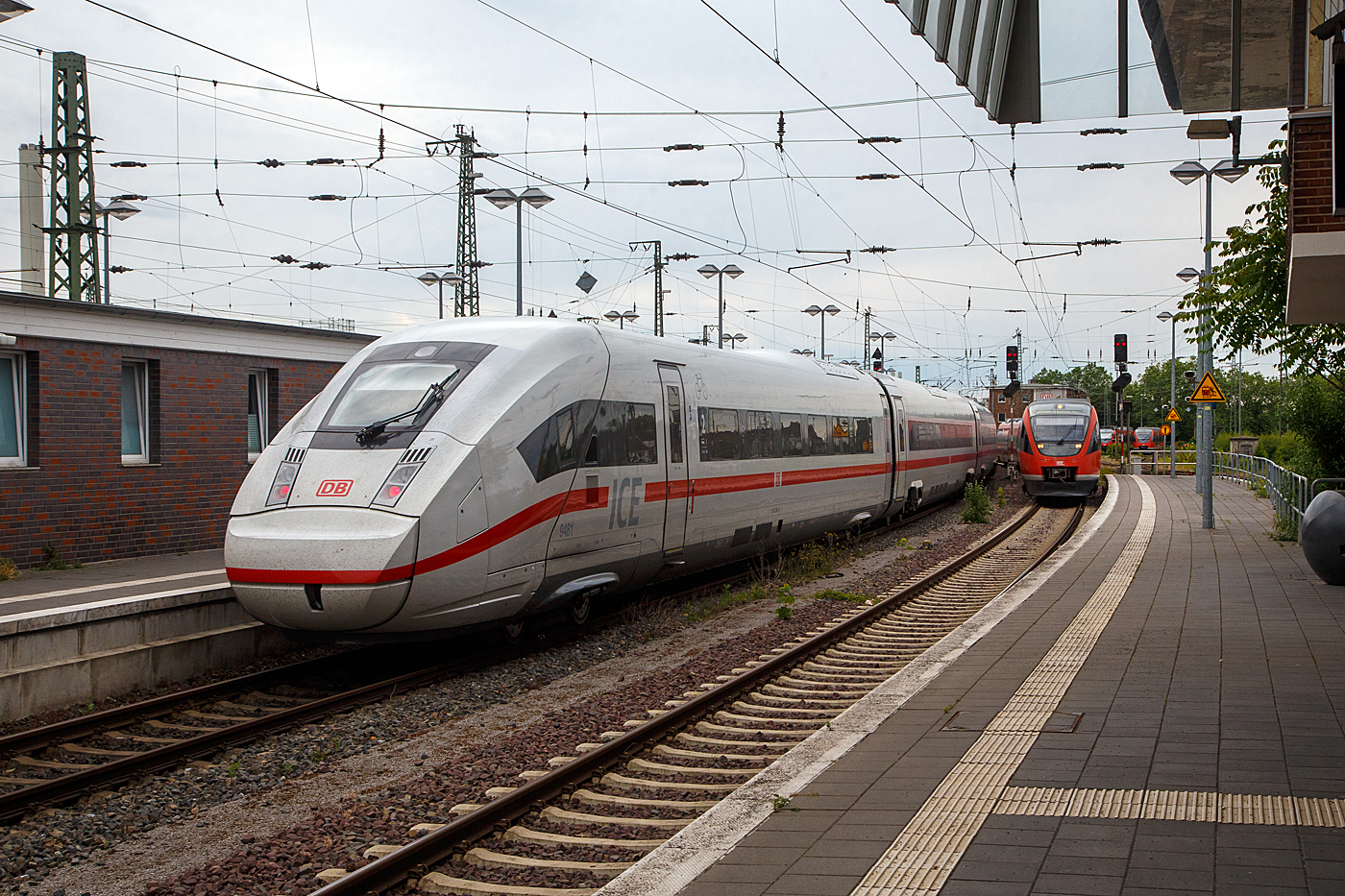Der ICE war zum Zeitpunkt der Aufnahme recht frisch, die Inbetriebnahme erfolgte erst am 11. April 2022, seine erste Fahrt im Plandienst war (10 Tage vor der Aufnahme) am 21. Mai 2022 als ICE 277 Berlin–Frankfurt–Basel, er hat auch die Zulassung für die Schweiz.