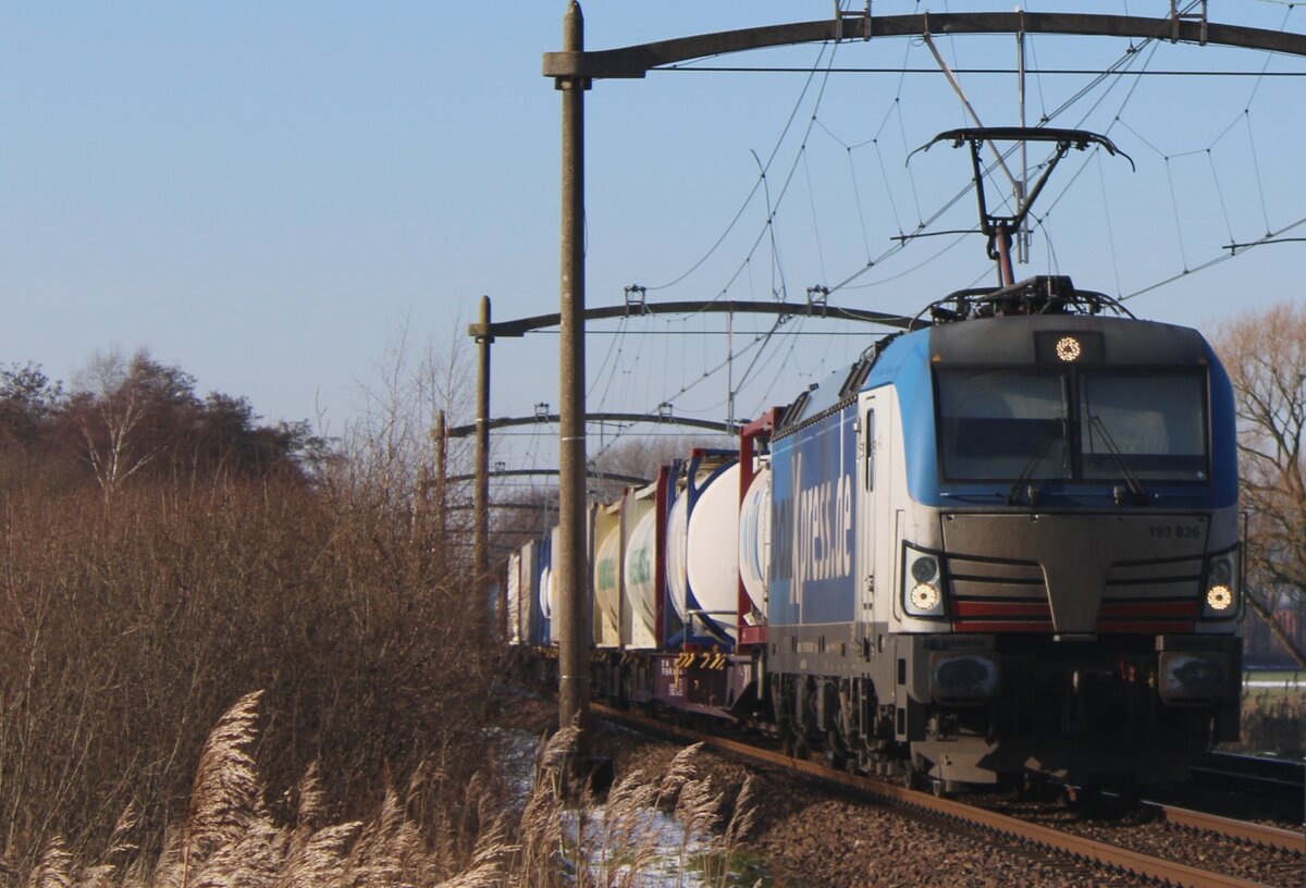 Am 19 Jänner 2024 durchfahrt BoxXpress 193 836 Hulten mit ein umgeleiteter KLV.