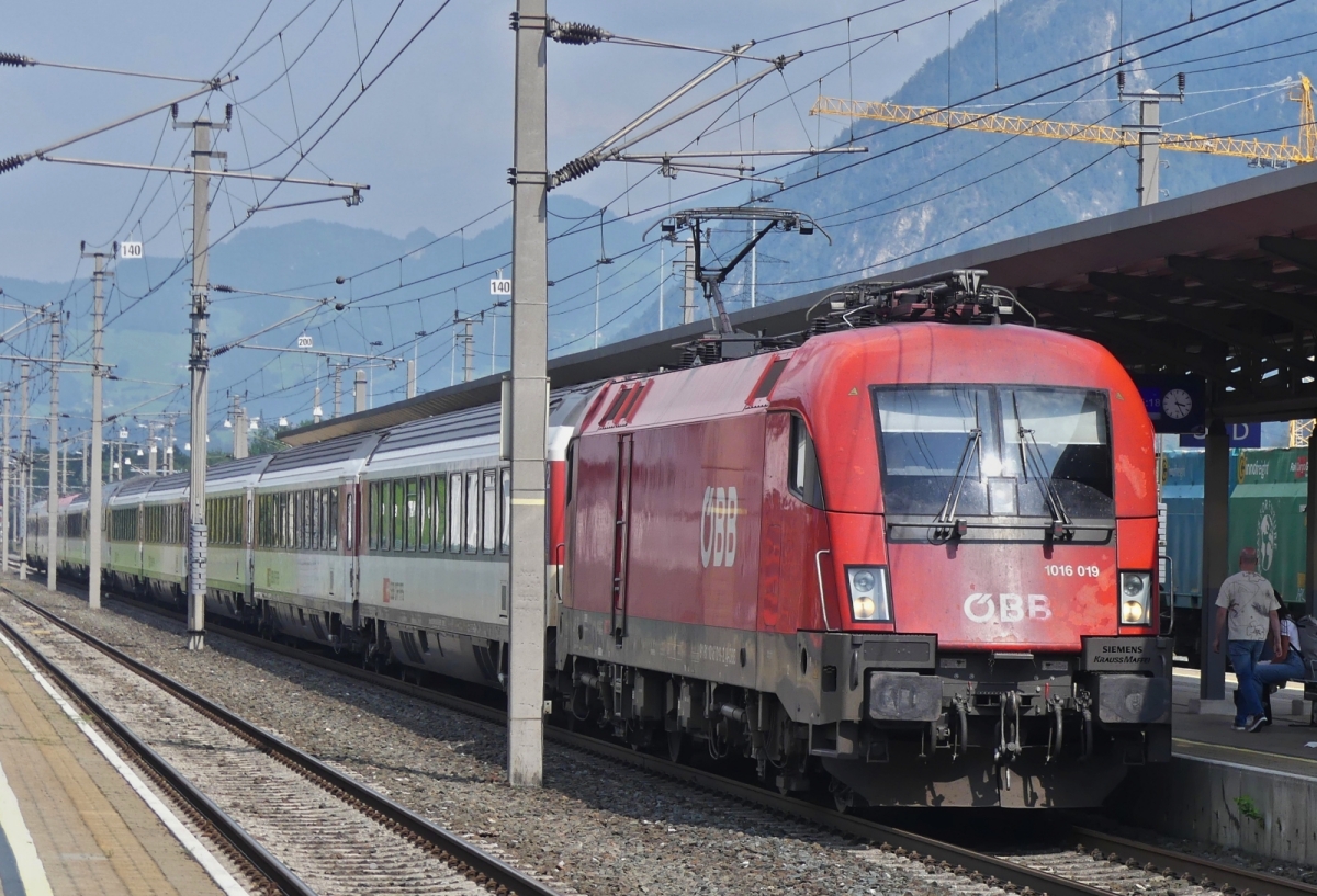 Siemens Vectron 6193 142, von Railpool mit Schwesterlok vor einem Güterzug bei der Durchfahrt vom Bahnhof Jenbach. 20.08.2024