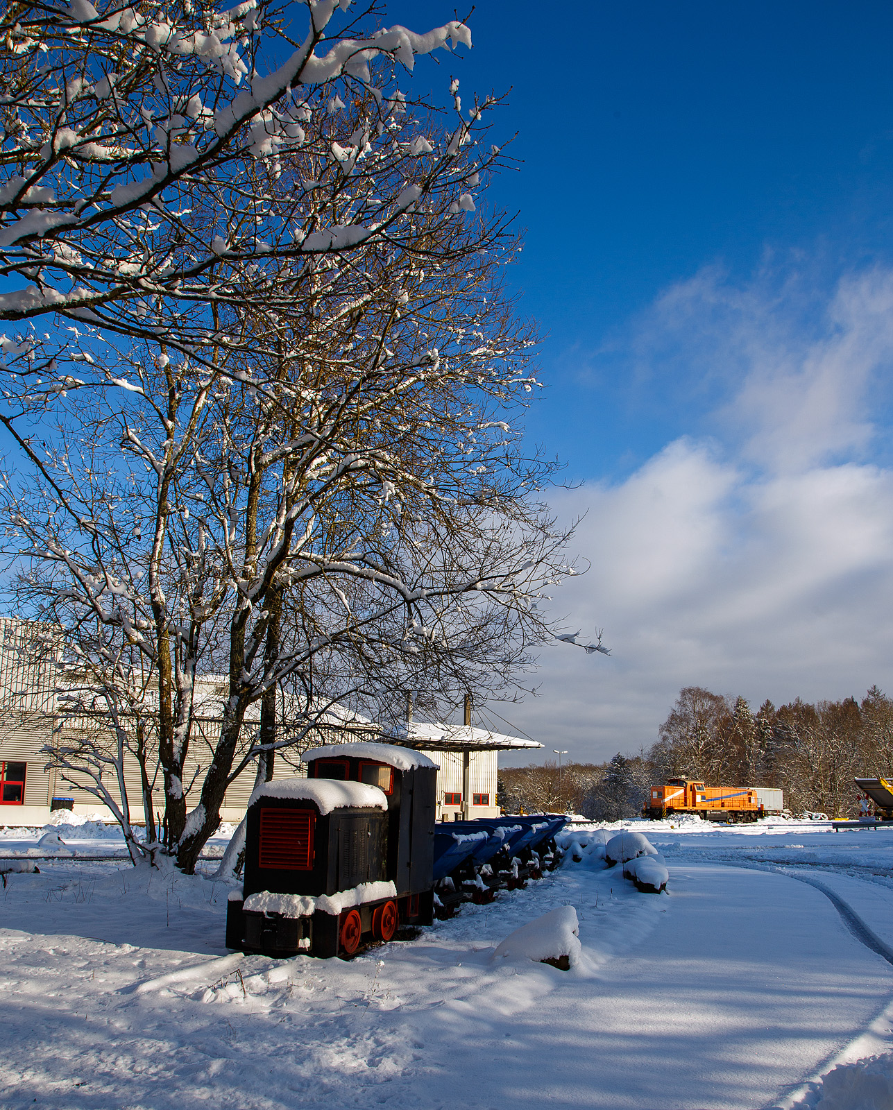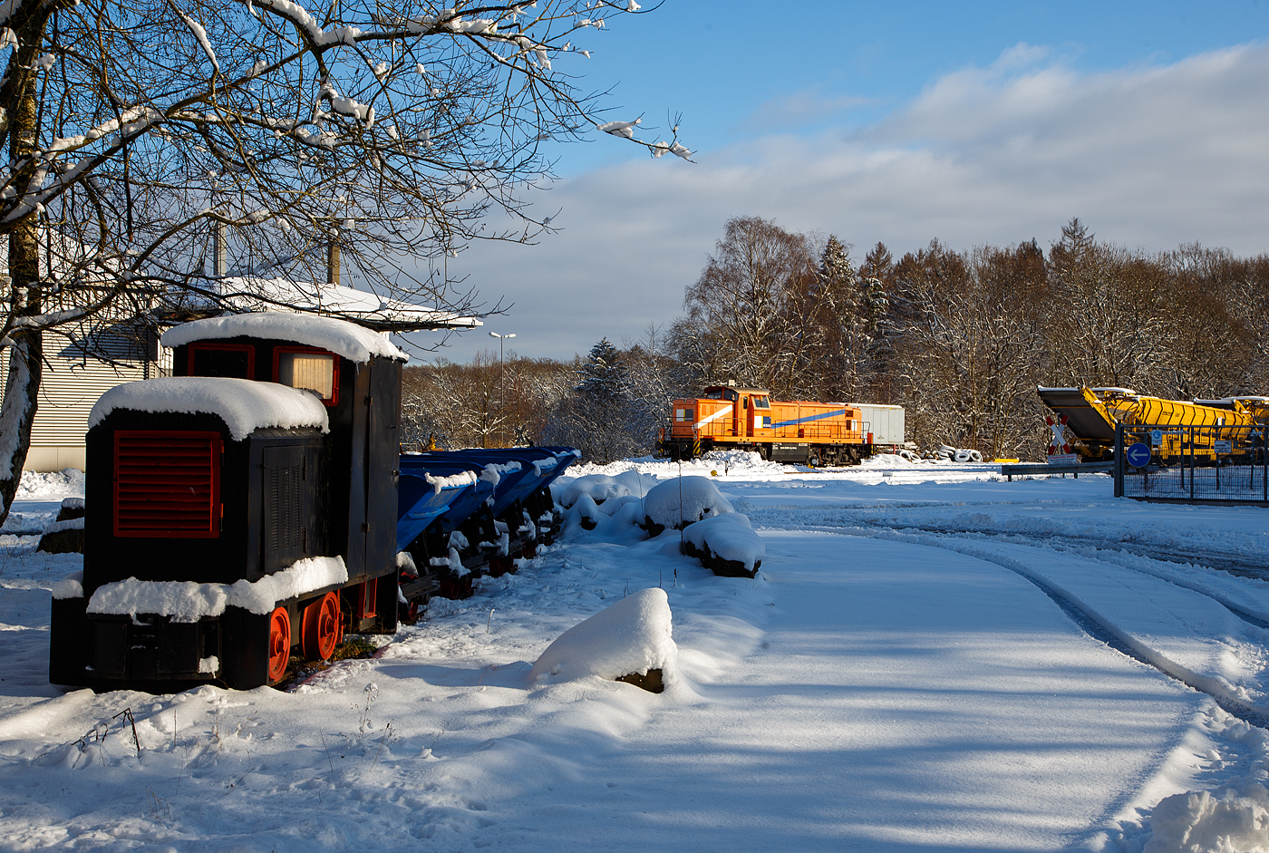 Die an die HERING Bahnbau (Burbach) vermietete 291 972-8 (98 80 3291 972-8 D-NRAIL) eine Sonderbauart MaK G 1600 BB der Northrail (Hamburg) ist am 20.12.2020 auf dem Betriebshof der Westerwaldbahn (WEBA) auf der Bindweide bei Steinebach/Sieg.