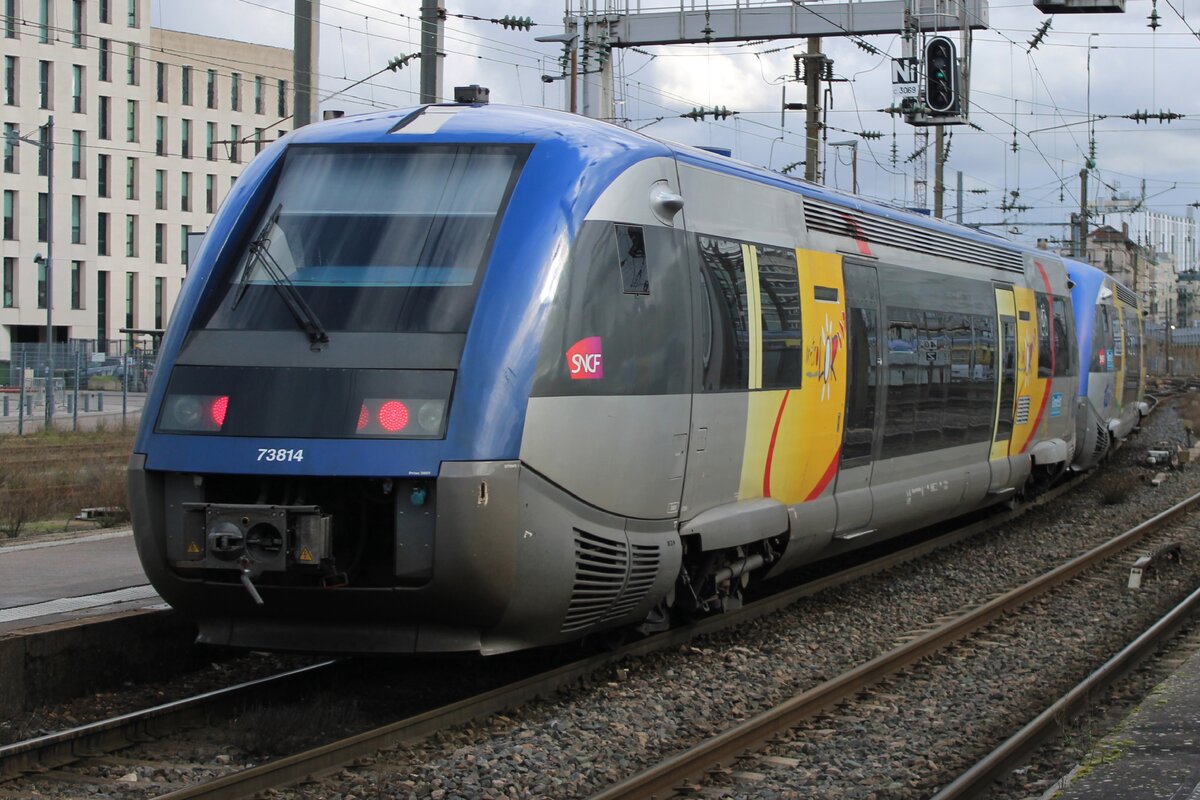 Der SNCF X 73758 auf der Fahrt als Leermaterialzug von Pontarlier nach Dole kurz nach nach La Rivière-Drugeon.