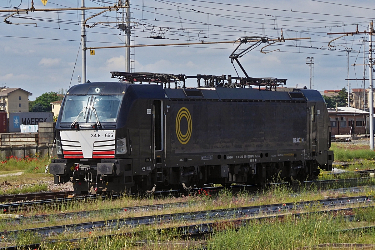 Lok 193-655 8, von Beacon, wurde von ihrem Zug getrennt und rangiert im Güterbereich des Bahnhofs von Verona Porta Nuovo. 09.05.2025