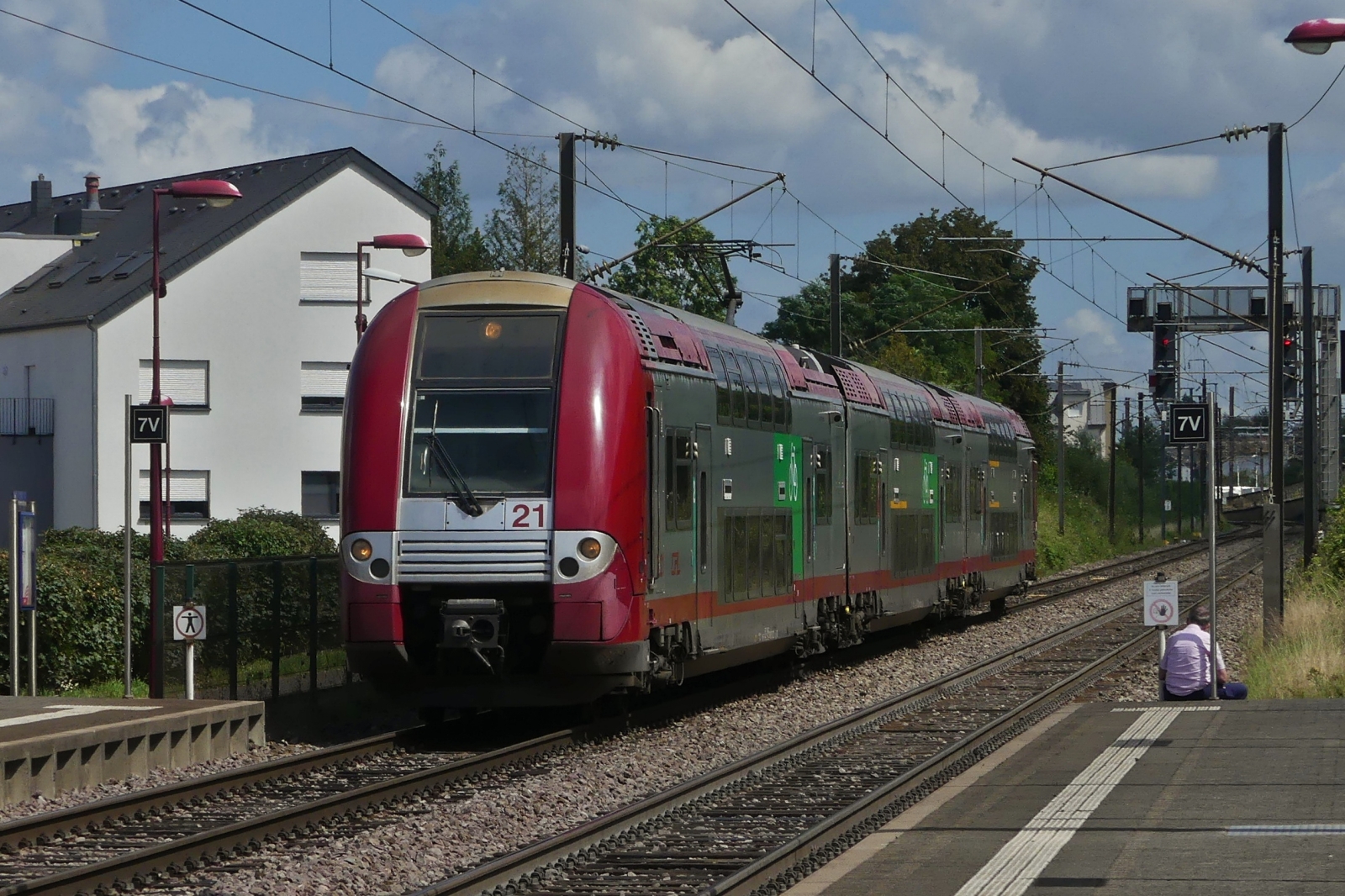 CFL 2221, mit noch fast intakten Farbkleid, kommt von Esch Alzette über Petange in die Haltestelle Lamadelaine eingefahren. 08.08.2024 Ab dem 12.08. fahren die auf dieser Strecke weiter über Esch Alzette bis Bettemburg