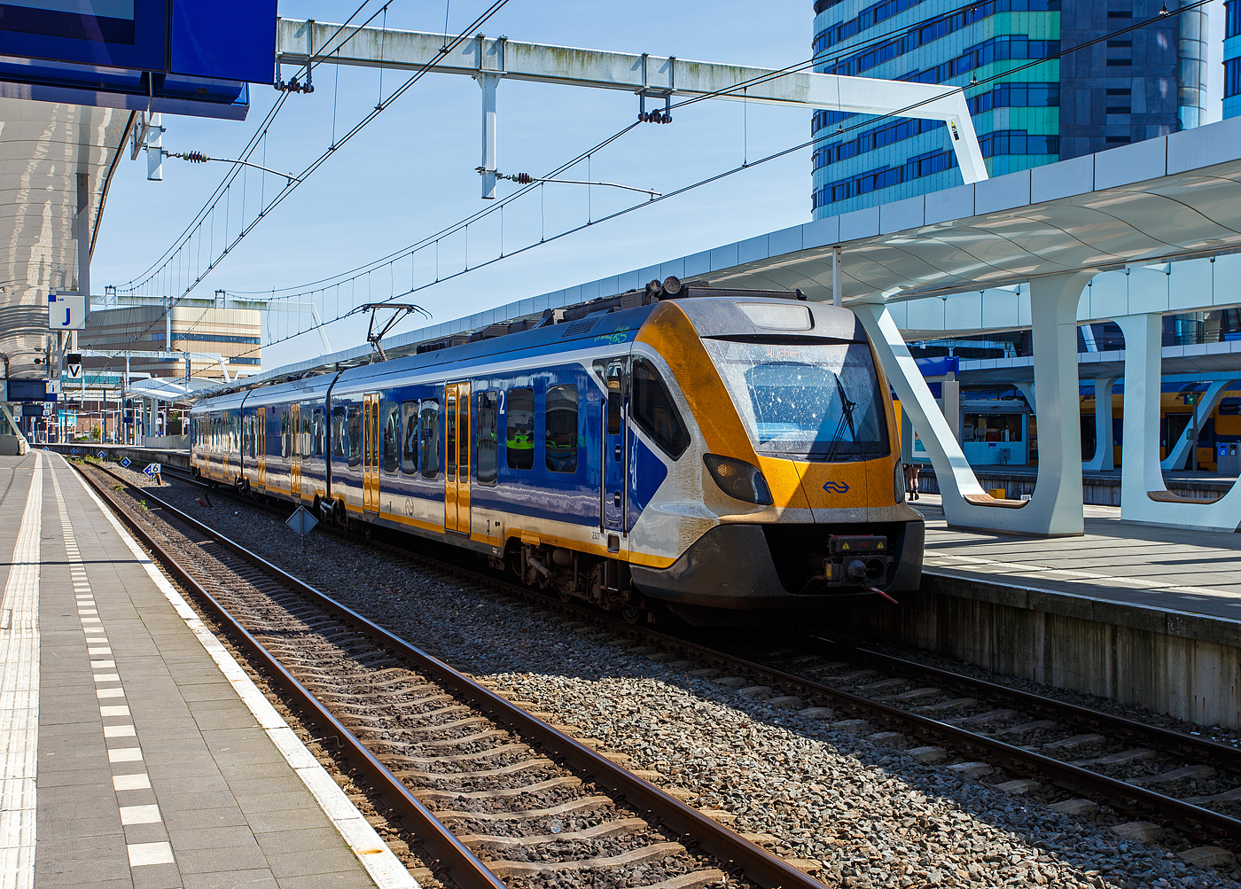 . Blick vom A'damtooren auf den Bahnhof Amsterdam CS. 25.09.2016 Fotostandpunkt auf dem Oberdeck von: http://wwwfotococktail-revival.startbilder.de/bild/Stadt+und+Land~Niederlande~Diverses/523239/-der-mit-der-spitze-fast.html