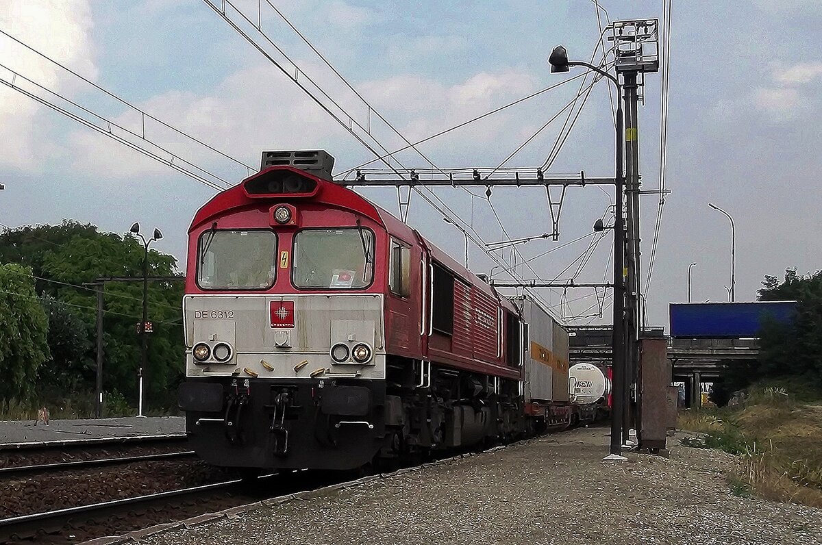 Am 24 Juni 2020 durchfahrt Crossrail DE 6310 mit der Neuss-Antwerpen Containerzug Breda.