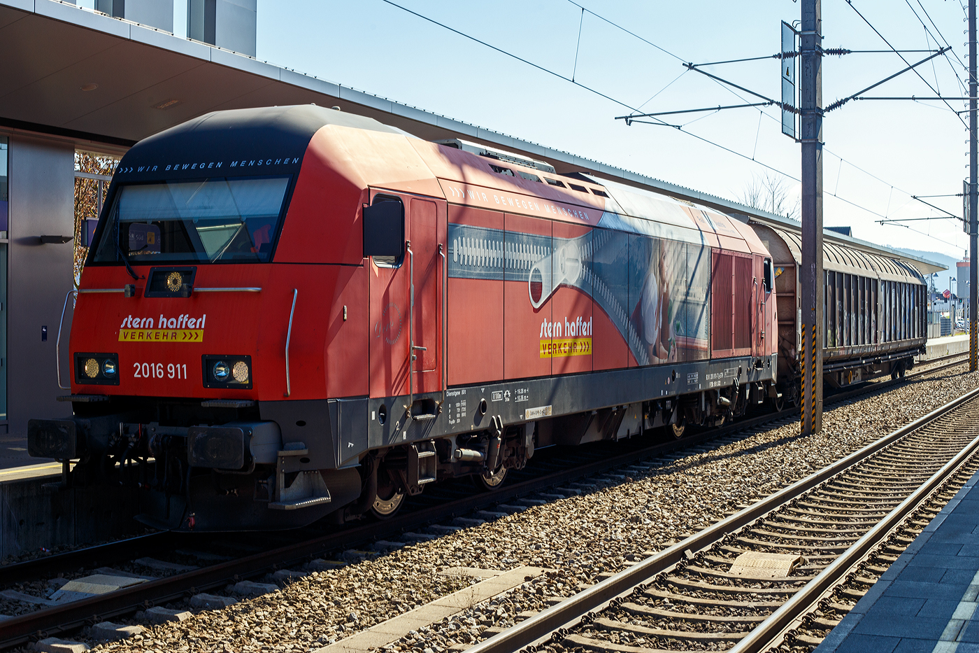 RTS Diesellok 2016 905 schiebt die entleerten Schottersammelwagen von der Entladestelle in der Nähe von Drauffelt zurück in Richtung Enschreange, wo der Rest des Zuges wieder angehängt wird, und die Arbeiten am Bahndamm fortgesetzt werden. 25.08.2023