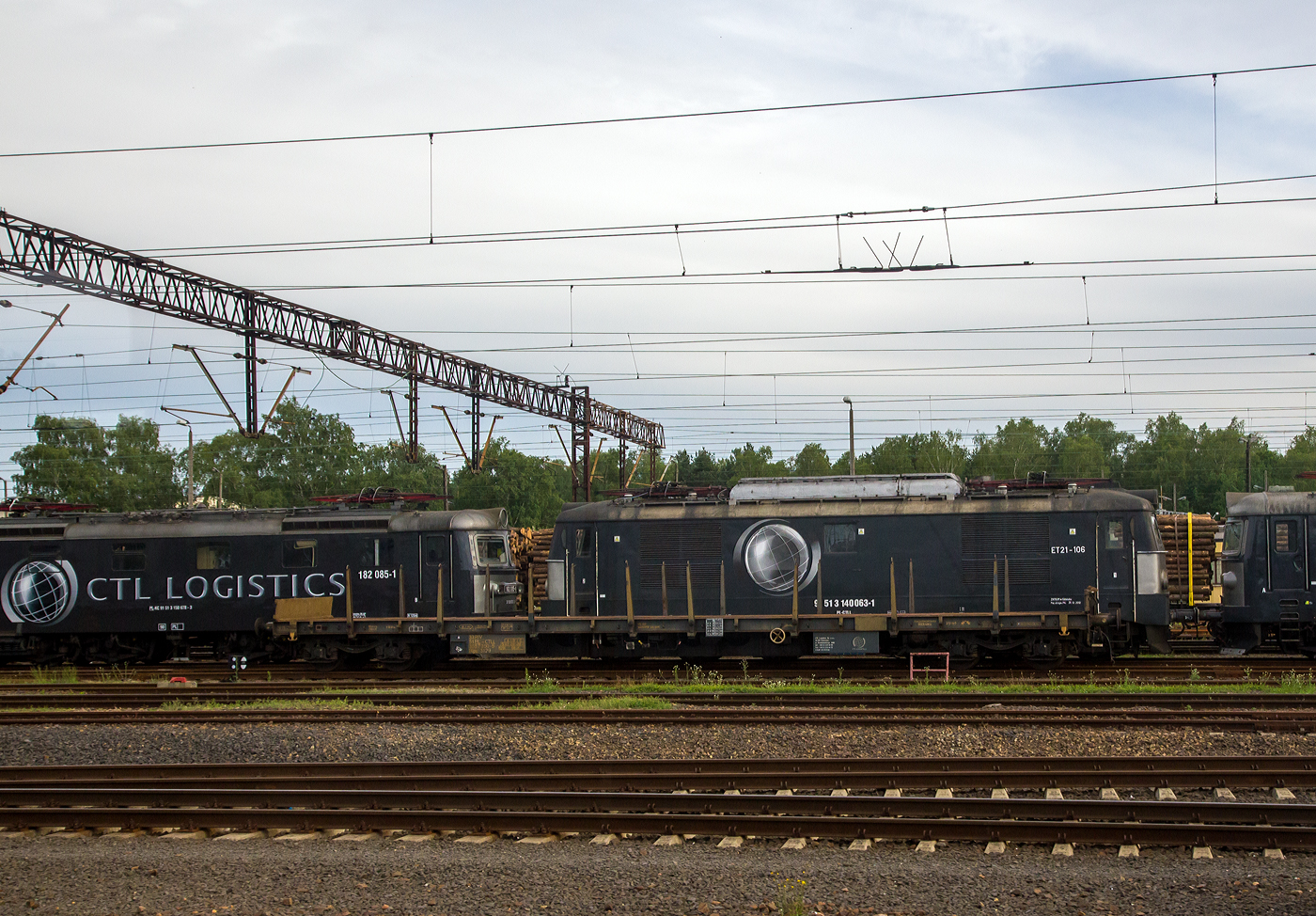 Die ET22-1213 (91 51 3 150 654-4 PL-PKPC 2151), ex ET22-428 eine leicht modernisierte Pafawag 201E der PKP Cargo fährt am 27.06.2017 mit einem Güterzug durch den Bahnhof Rzepin / Polen (deutsch Reppen).