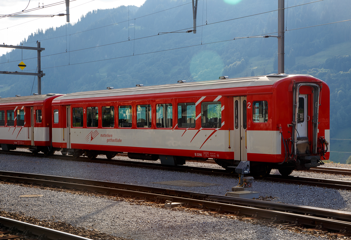 Der MGB 2. Klasse Wagen B 4274 am 01.08.2019 im Bahnhof Göschenen im Zugverband.