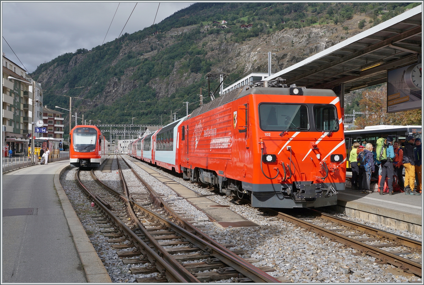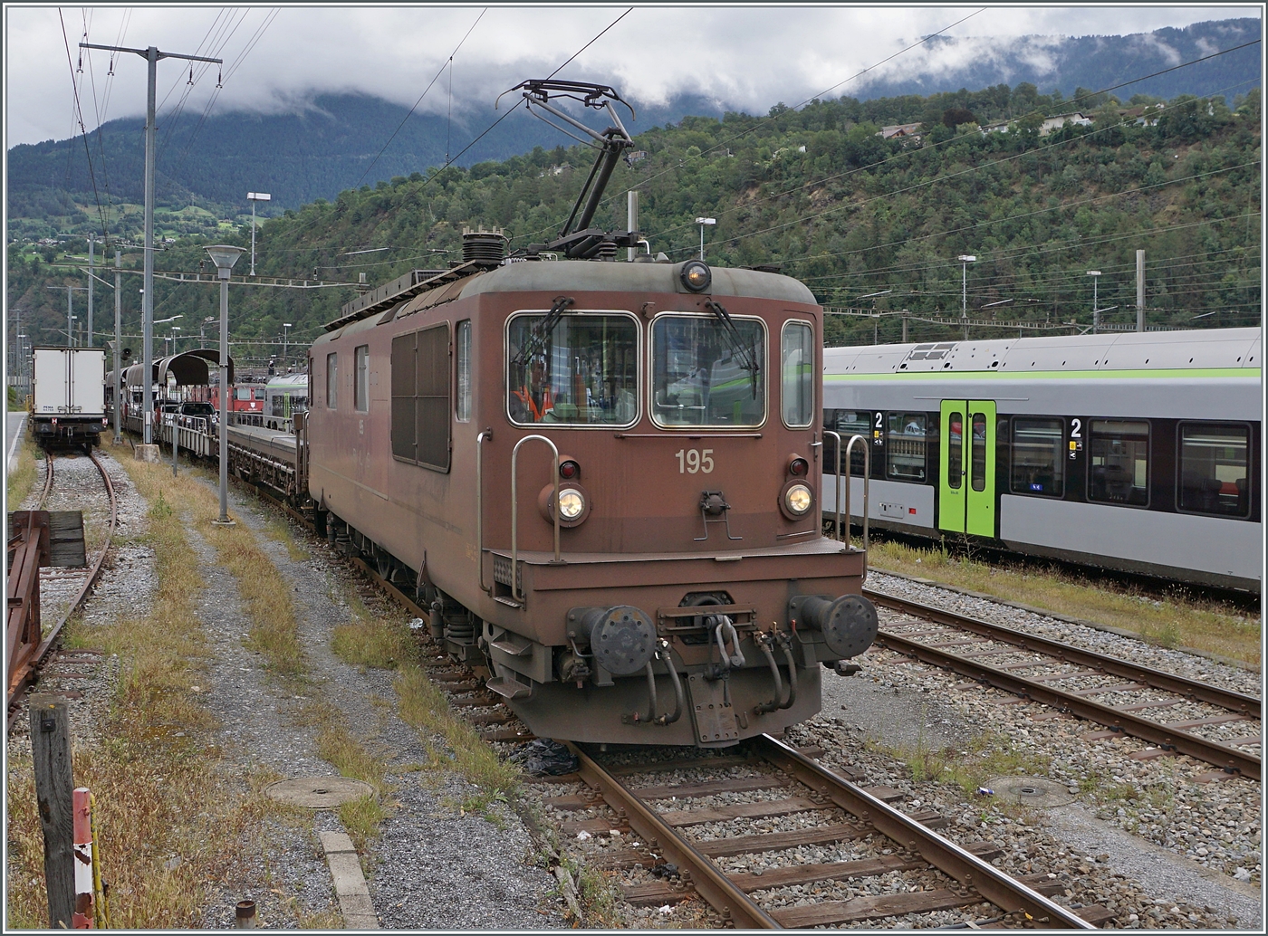 Der vierteilige BLS "Lötschberger" RABe 535 123-4 "Ausserberg" (94 85 7535 118-4 CH-BLS) steht am 07 September 2021 beim Bahnhof Brig.