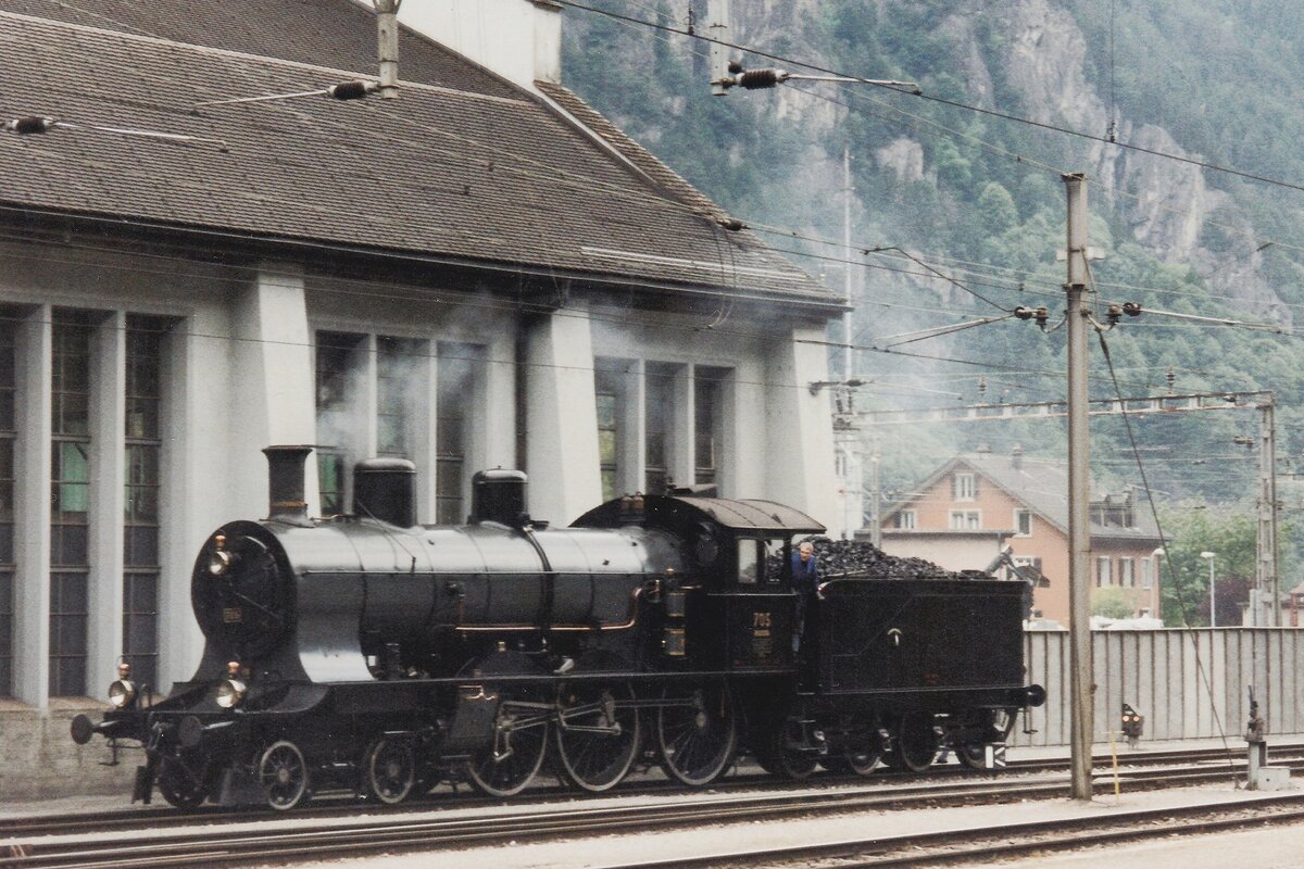 Scanbild: SBB Historic 705 steht am 25 Mai 2007 in Erstfeld in Vorbereitung des 1. Jubiläum der Gotthardstrecke.