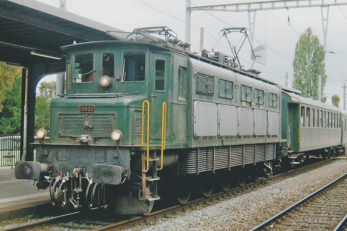 Leider war 25 September 2010 etwas grau während das regionaler Bahnfest  150 Années de Arc Jurassién  mit Auftritt von 10950 mit Extrazug in Neuchatel.