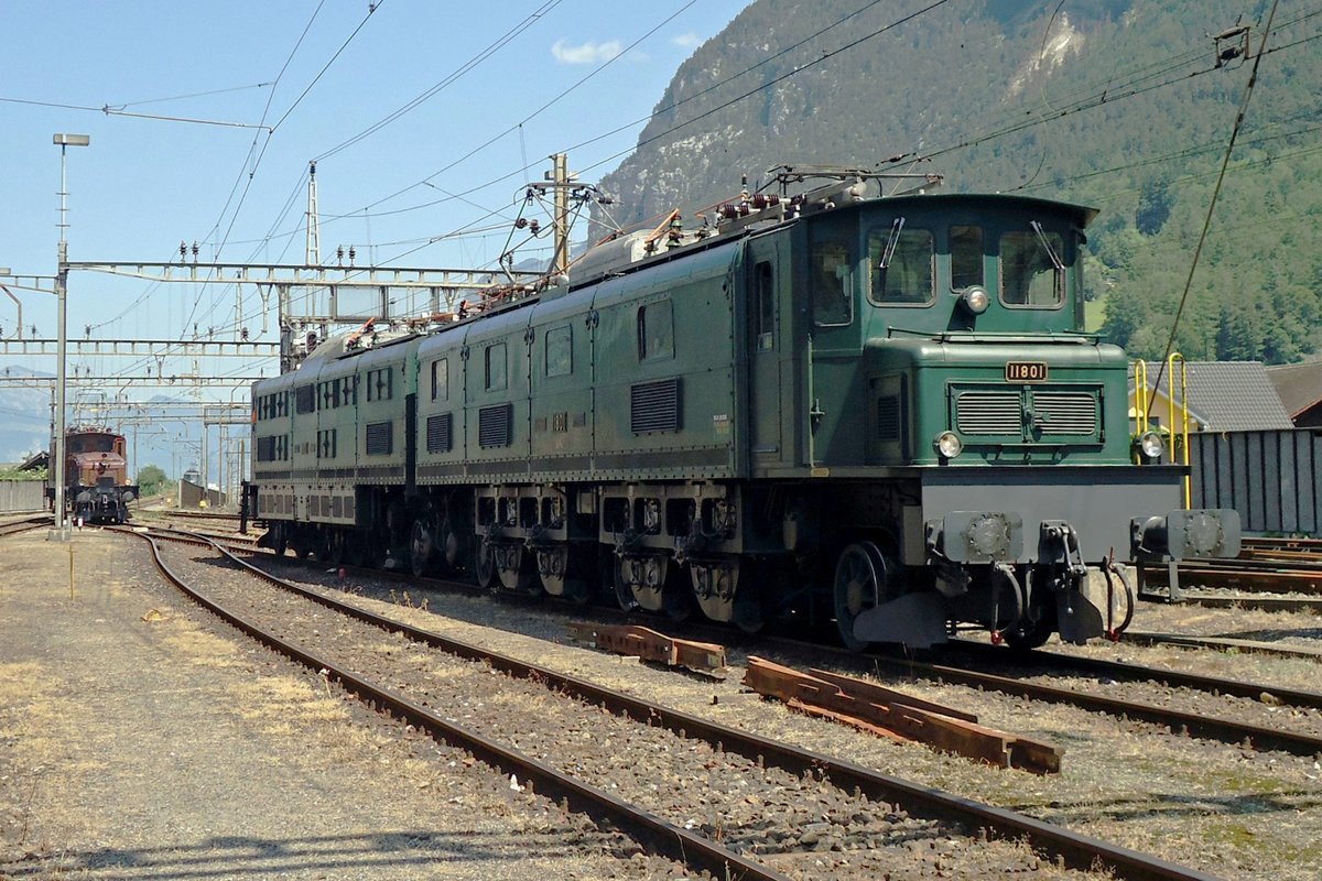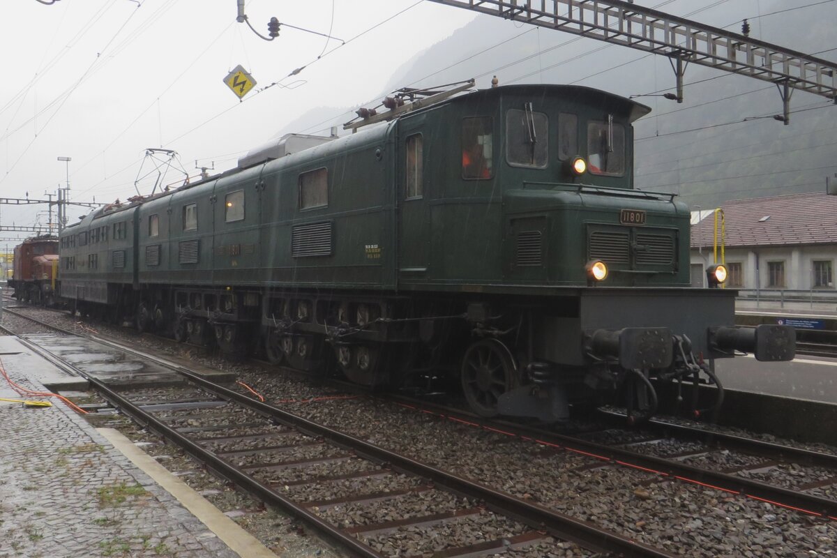 Am ganz verregneten 19 september 2019 steht 11801 in Erstfeld während der bis heute leider einzige Edition vons Bahnhofsfest  Bahnen am Gotthard .