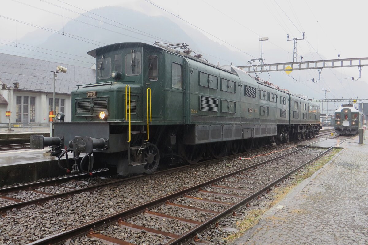 Am ganz verregneten 19 september 2019 steht 11801 in Erstfeld während der bis heute leider einzige Edition vons Bahnhofsfest "Bahnen am Gotthard".