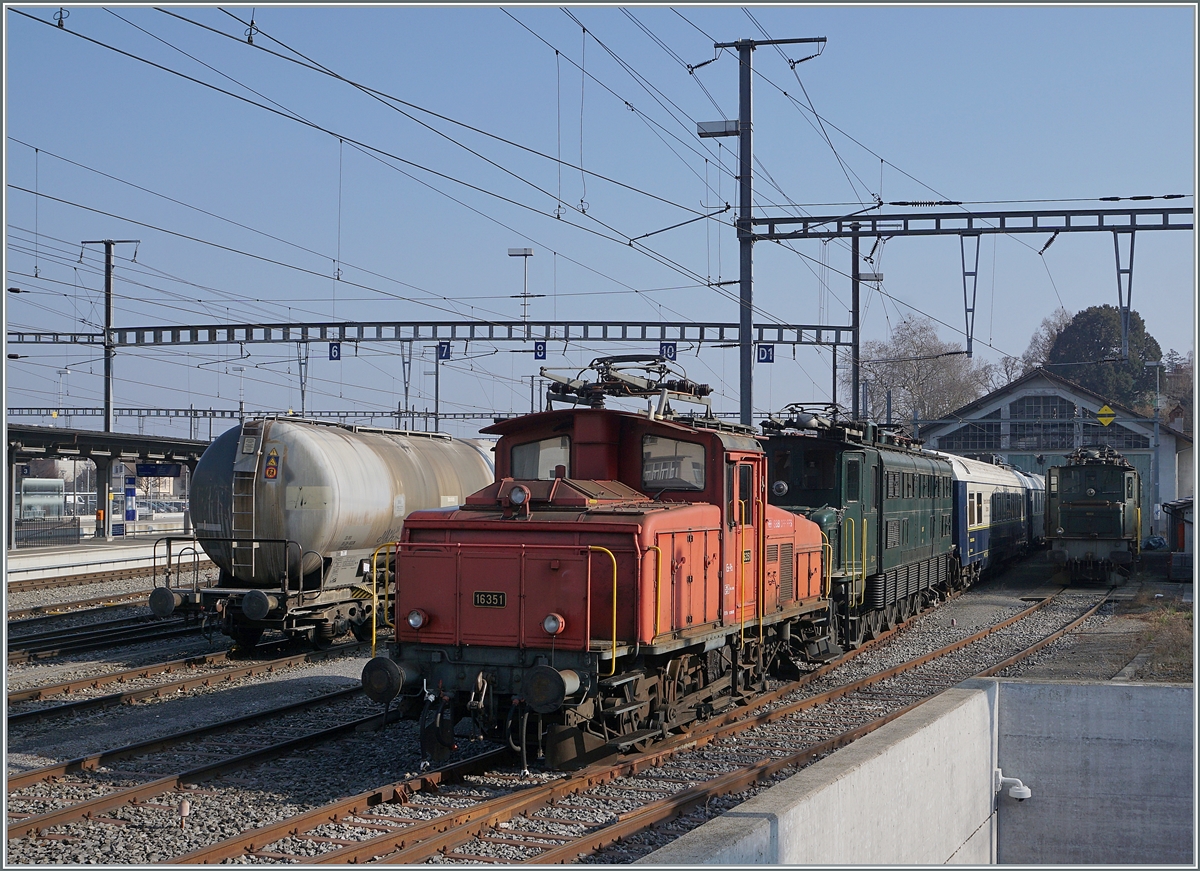 In Payerne vor der Swisstrain Ae 4/7 10997 steht die Ee 3/3 16352.