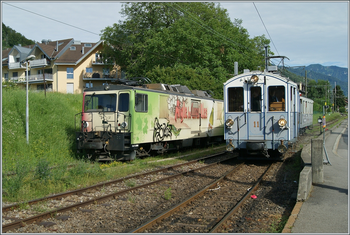 So war es eigentlich nicht gedacht; ich wollte auslösen wenn sich die beiden Lok zeigen, doch der MOB Mitarbeiter verwirrte mich, so dass ich zu spät abdrücket (was natürlich nicht dem MOB Mitarbeiter anzulassen ist). Dafür zeit sich die GDE 4/4 6002 mit einem ihrer letzten planmässigen Leistung im GoldenPass Panoramique Verkehr in recht gutem Licht.