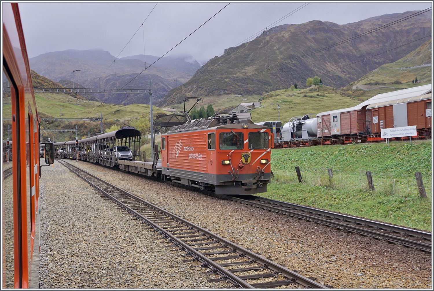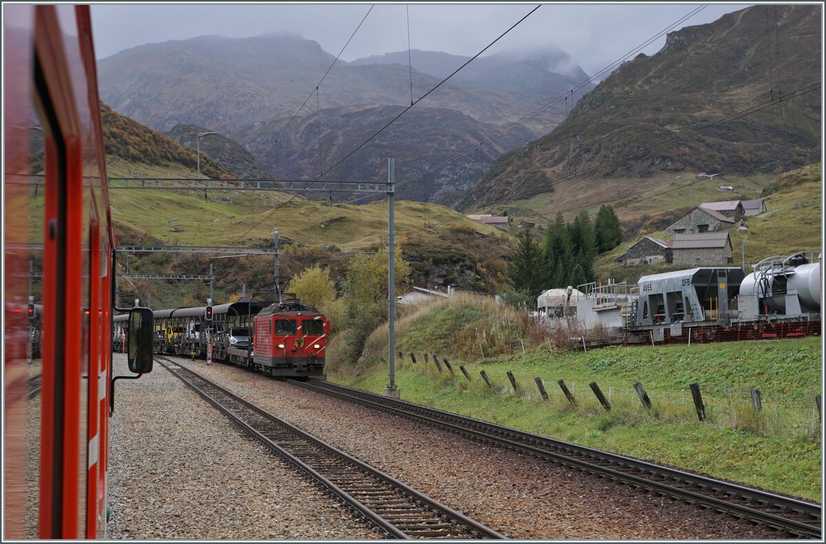 Während die beiden Ge 4/4 21 und 22 ihren Kieszug rangieren, verlässt ein BAM MBC SURF Be 4/4 Morges in Richtung Bière.