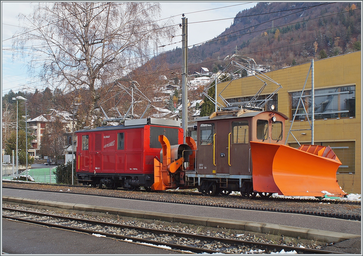 Zu meiner Freude sorgt auch diesen Winter, zumindest teilweise, das Gespann des CEV X rot 91 und der 1911 gebauten CEV HGe 2/2 N° 1 für die Schneeräumung auf der Strecke Blonay - Les Pléiades.
