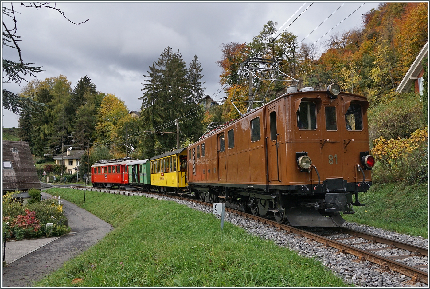 wunderschöne Bilder dem ex Bernina Bahn RhB ABe 4/4 I 35 in Blonay, aus der Zukunft.