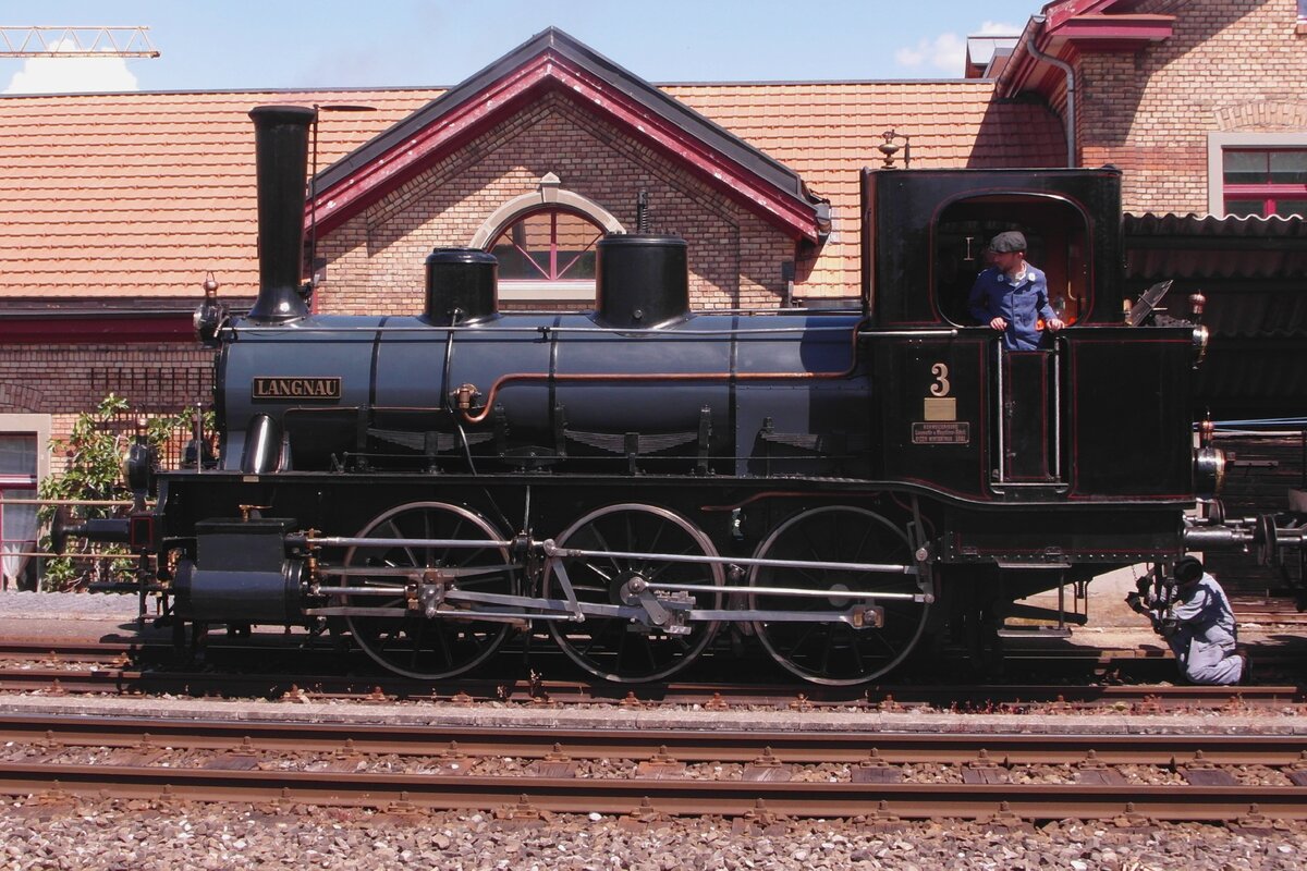 Die E 3/3 853 der DBB mit der UIC Nummer 90 85 0008 573-7 verlässt mir ihrem ersten Dampfzug Sumiswald Grünen in Richtung Wasen im Emmenthal.