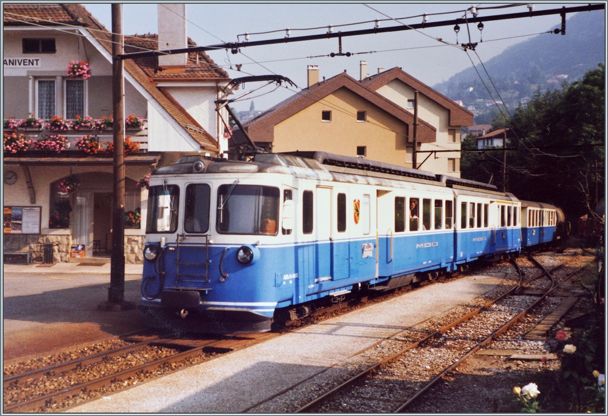 Viele Jahre später fotografierte ich wieder einen MOB ABDe 8/8 in Fontanivent; der ABDe 8/8   4004 ist auf dem Weg nach Montreux und die Gleisanlage ist  vereinfacht  worden. Der ABDe 8/8  Bern  dürfte zu diesem Zeitpunkt bereits verschrottet worden sein.
