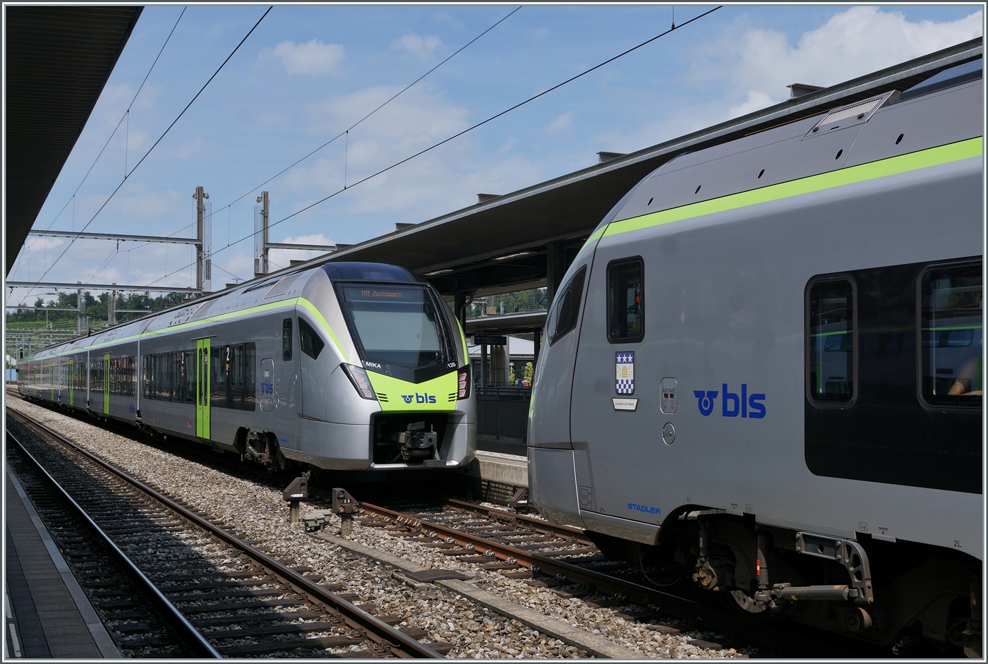 Der Trenitalia "Frecciargento“ ETR 610.012 der 1. Serie (93 85 5 610 012-2 CH-TI / 93 85 5 610 112-x CH-TI) verlässt am 28.05.2023, als EC 57 von Basel SBB via Domodossola nach Milano Centrale, den Bahnhof Spiez.