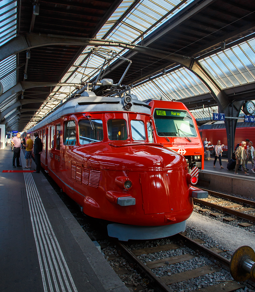 Der RAe 4/8 1021 "roter Pfeil Churchill" stand am 06.06.2015 im Zürcher Hauptbahnhof zu einer "Kulturreise" bereit, es war ein echtes Highlight im HB Zürich.