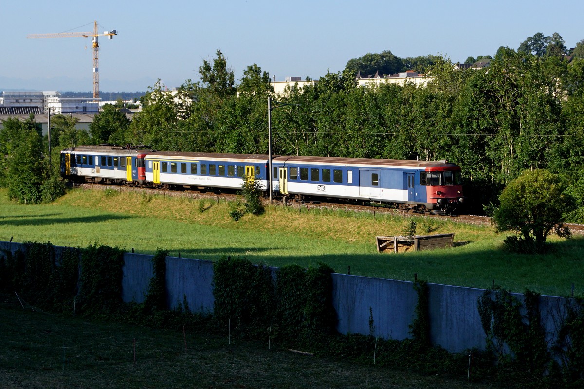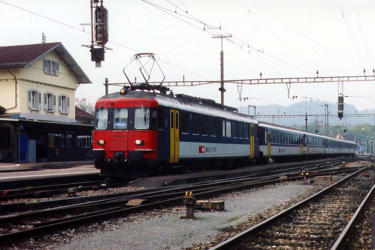 OeBB: Am 11. Juni 2015 gelangte der RBe 4/4 206 (ehemals SBB) im Güterverkehr zum Einsatz. Auf der Station Klus wartet er eine Zugskreuzung mit dem Regionalzug ab.